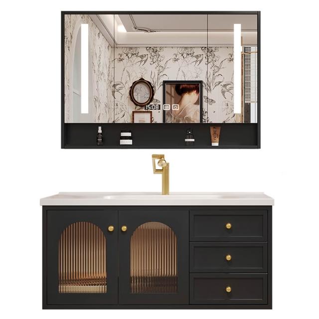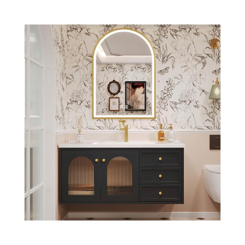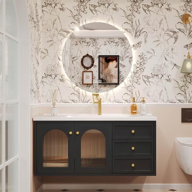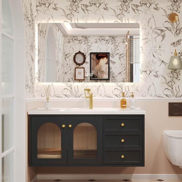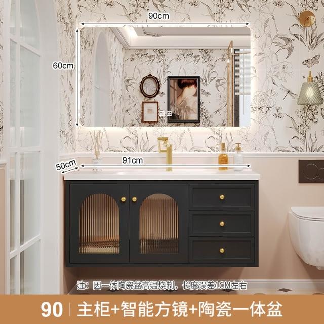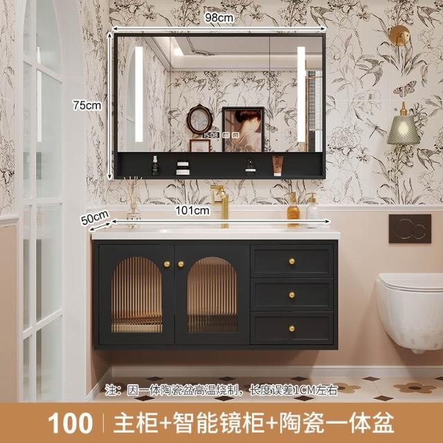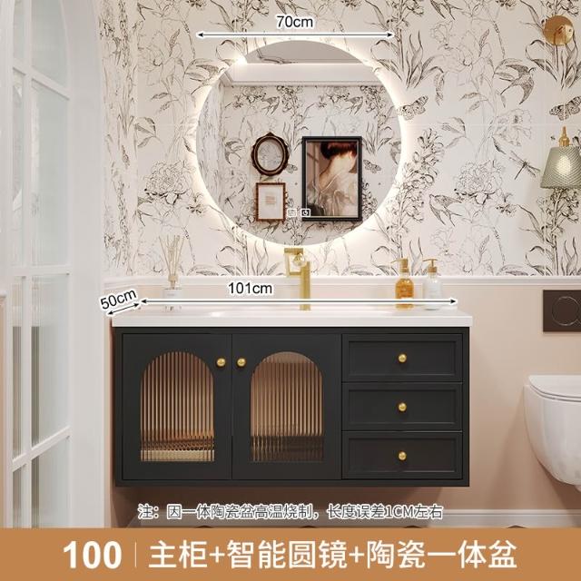 橡木法式復古浴室櫃陶瓷一體盆衛生間洗臉洗手盆櫃組合洗漱臺美式