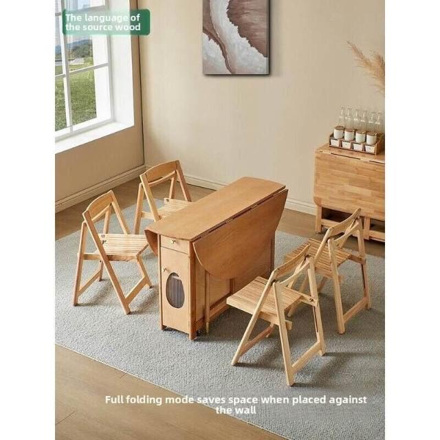 北歐實木圓形折疊餐桌椅組合可伸縮家用小戶型簡易多功能日式餐臺