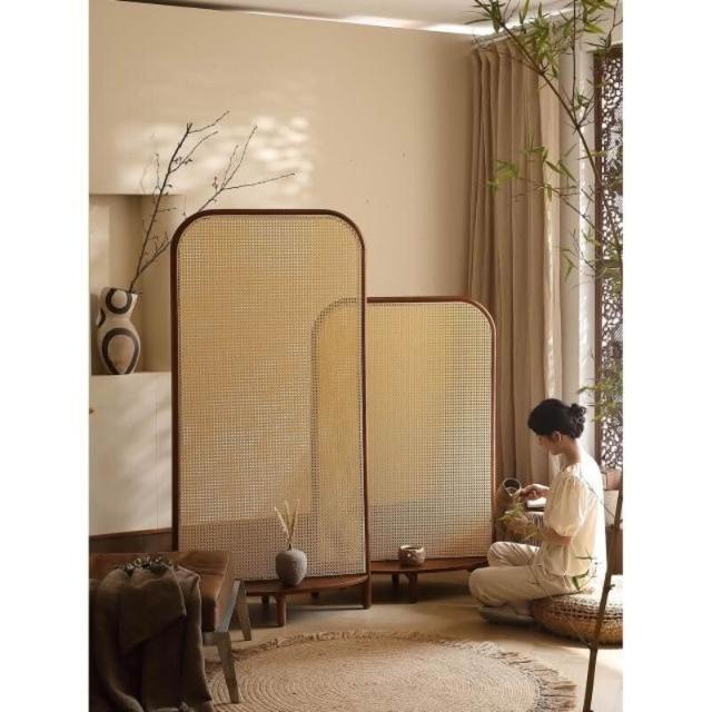 新中式藤編玄關櫃矮屏風入戶正對進門客廳沙發隔斷新款裝飾置物架
