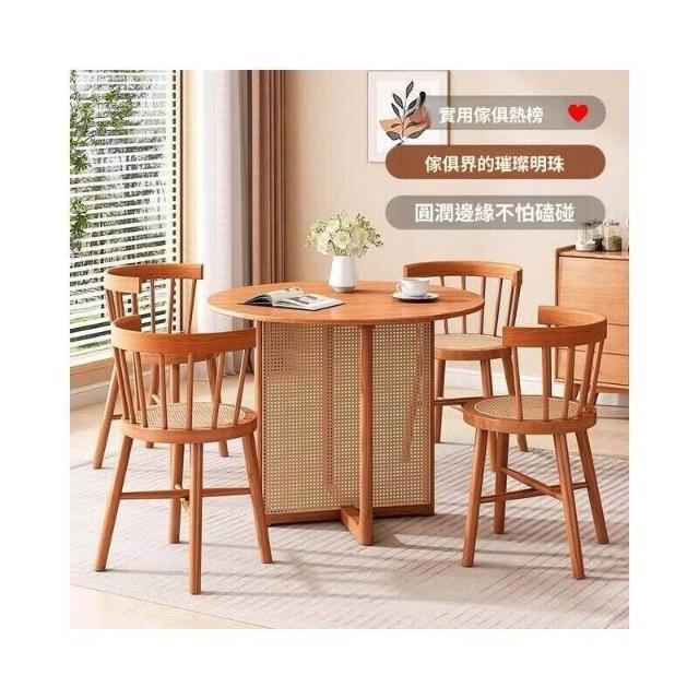 藤編實木圓桌北歐家用喝茶休閒桌子圓形日式原木餐桌椅組合小戶型