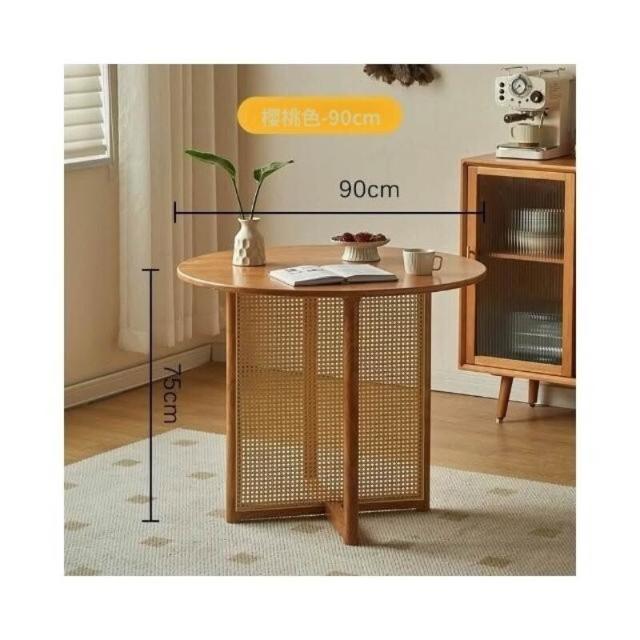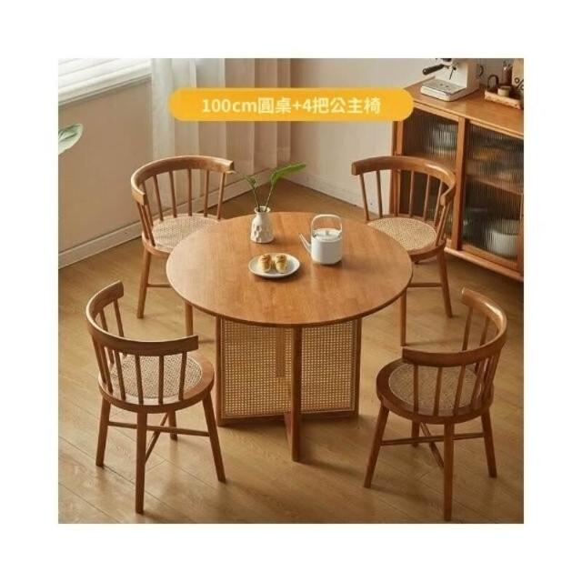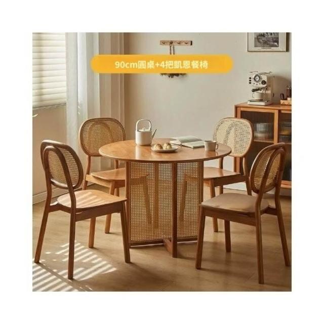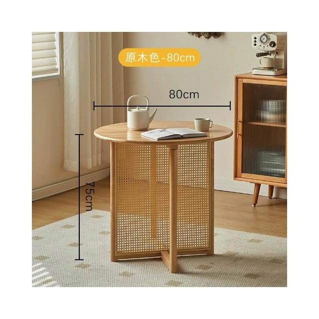 藤編實木圓桌北歐家用喝茶休閒桌子圓形日式原木餐桌椅組合小戶型