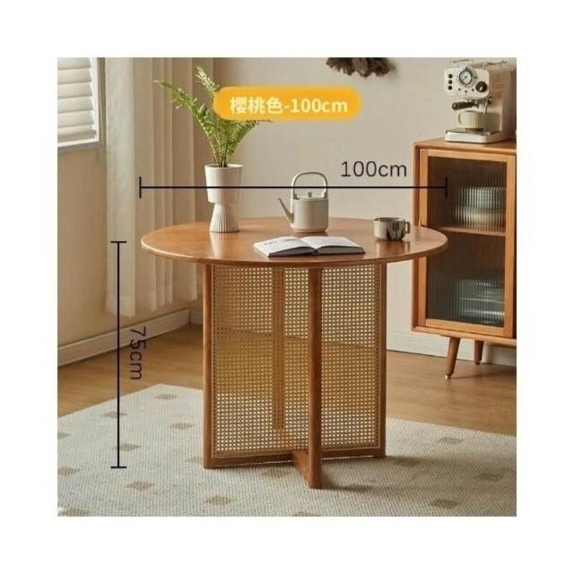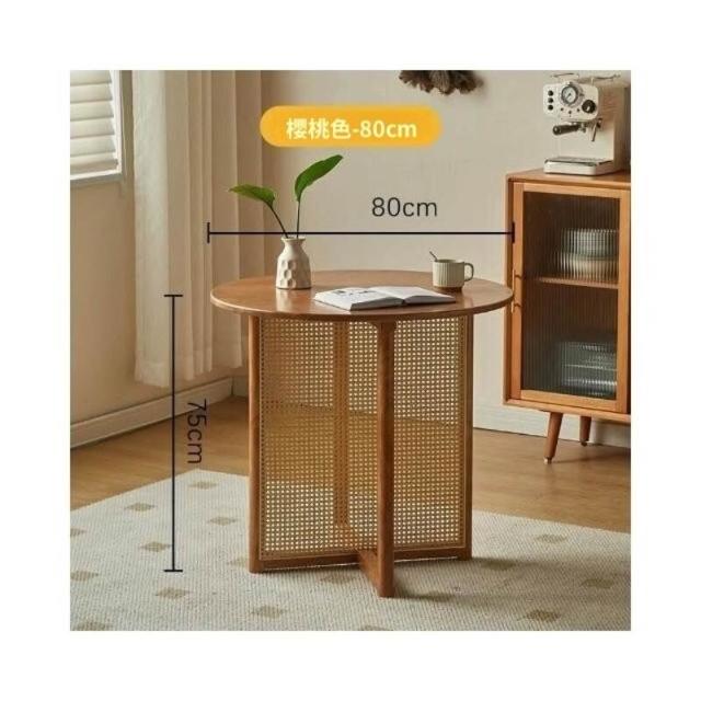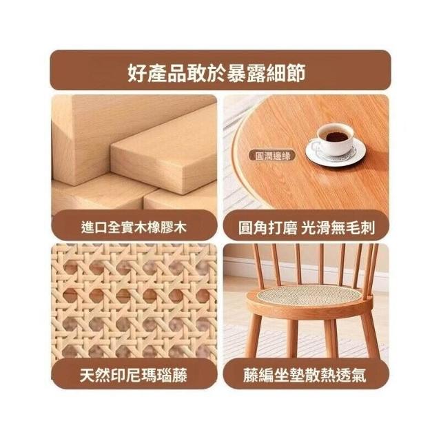 藤編實木圓桌北歐家用喝茶休閒桌子圓形日式原木餐桌椅組合小戶型