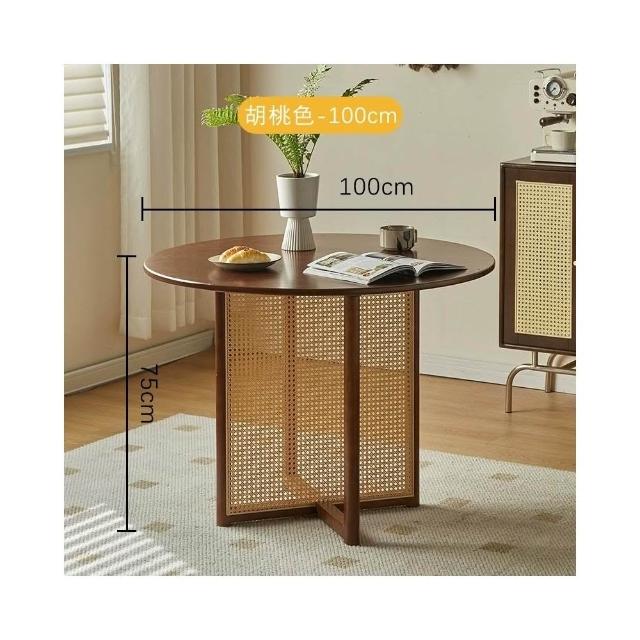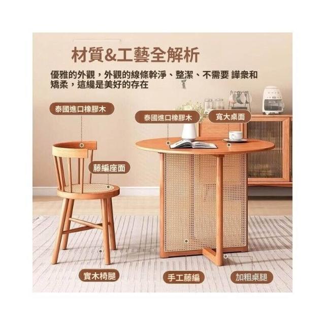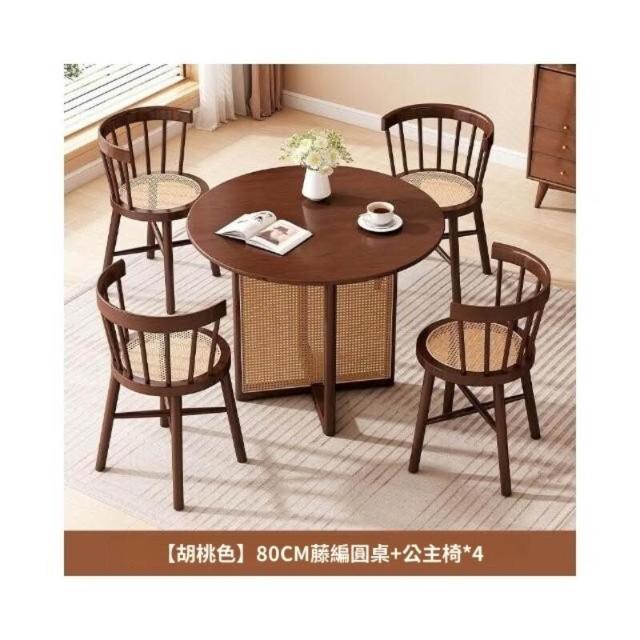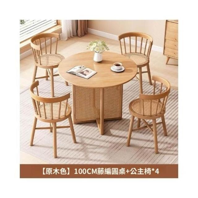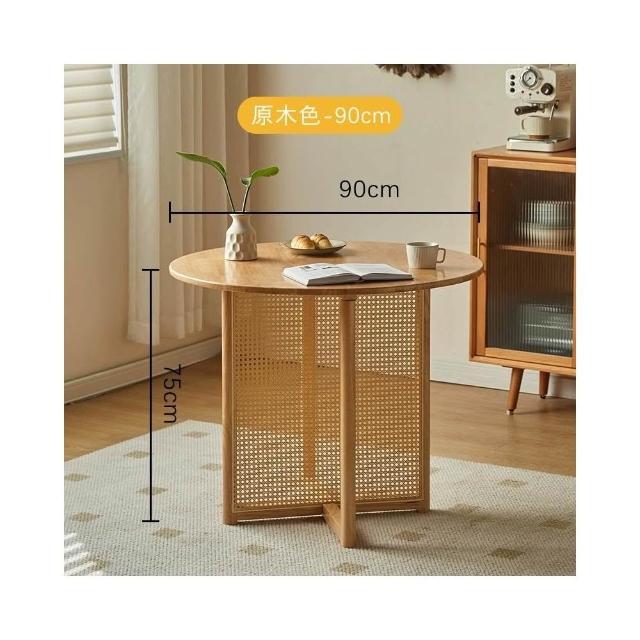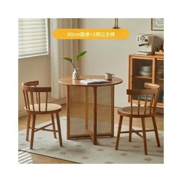 藤編實木圓桌北歐家用喝茶休閒桌子圓形日式原木餐桌椅組合小戶型