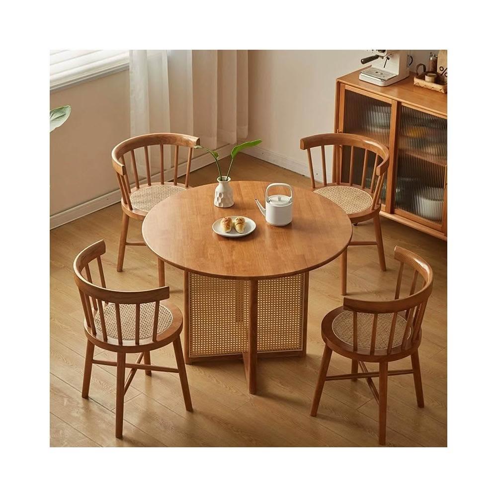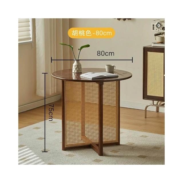 藤編實木圓桌北歐家用喝茶休閒桌子圓形日式原木餐桌椅組合小戶型
