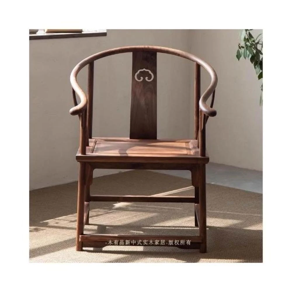 新中式實木圈椅明式老榆木主人椅黑胡桃木太師椅禪意仿古喝茶椅子