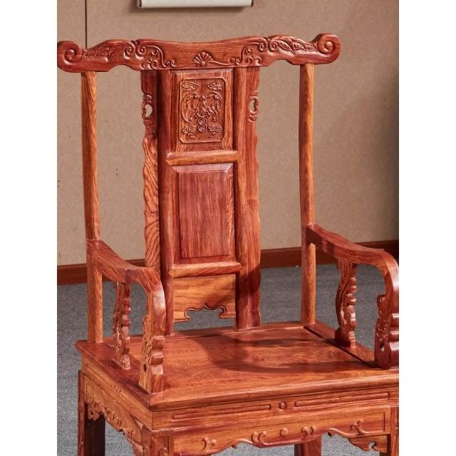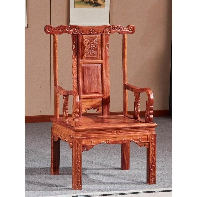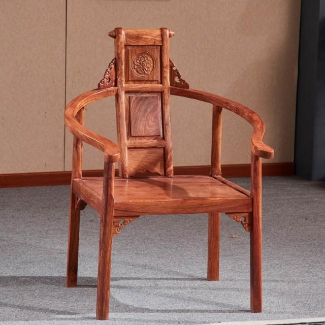 紅木豪華主人椅刺蝟紫檀茶臺靠背椅花梨木家用中式實木圈椅太師椅