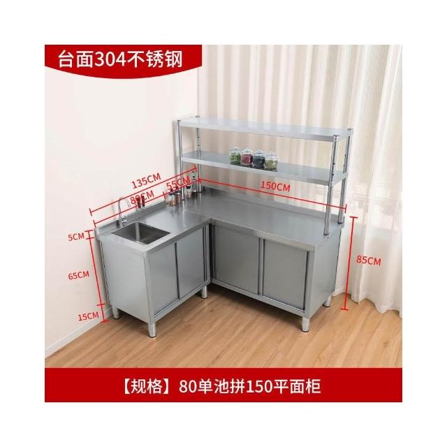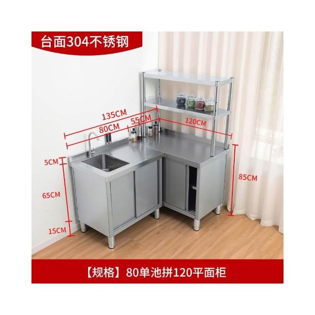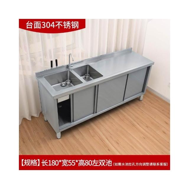 304不銹鋼水池水槽操作臺工作臺一體儲物洗菜盆灶台櫥櫃家用商用