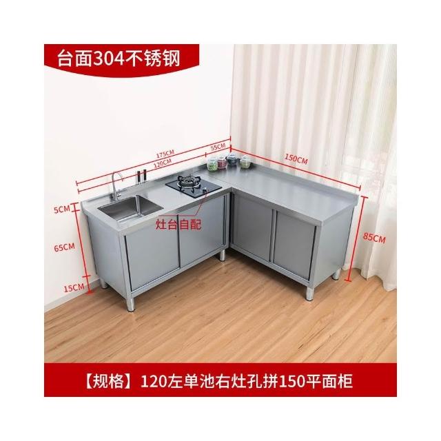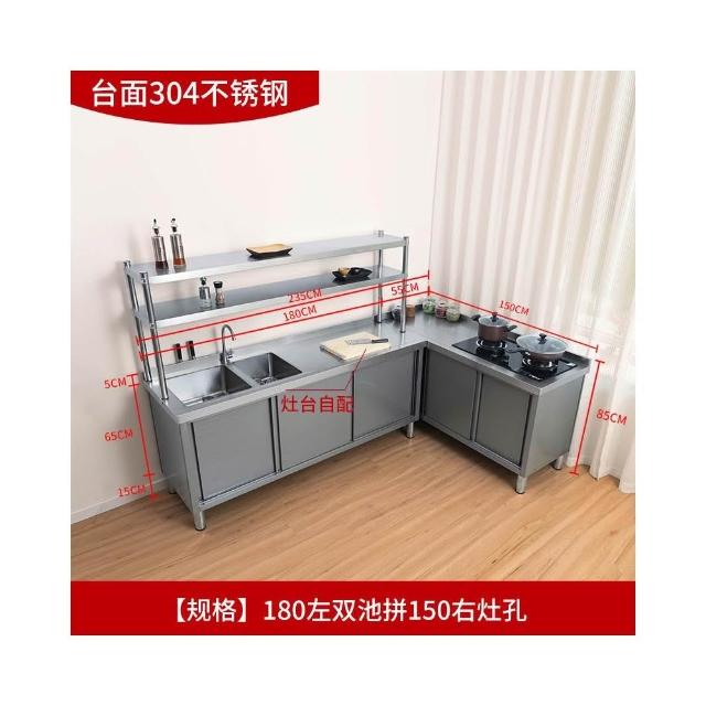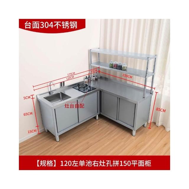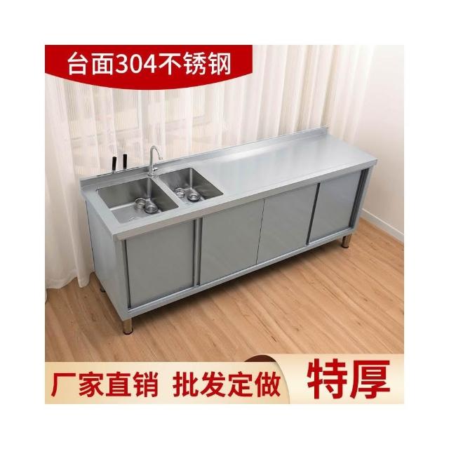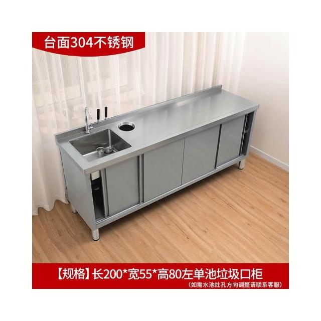 304不銹鋼水池水槽操作臺工作臺一體儲物洗菜盆灶台櫥櫃家用商用