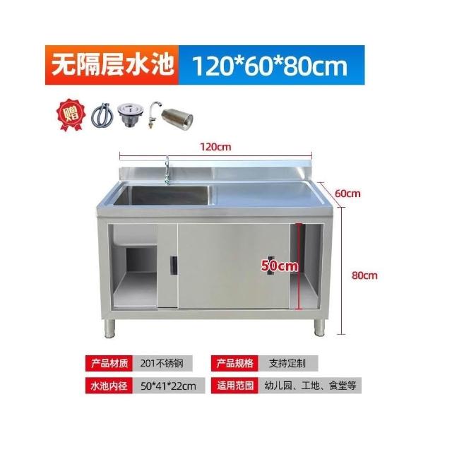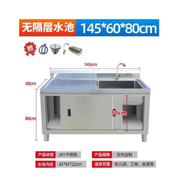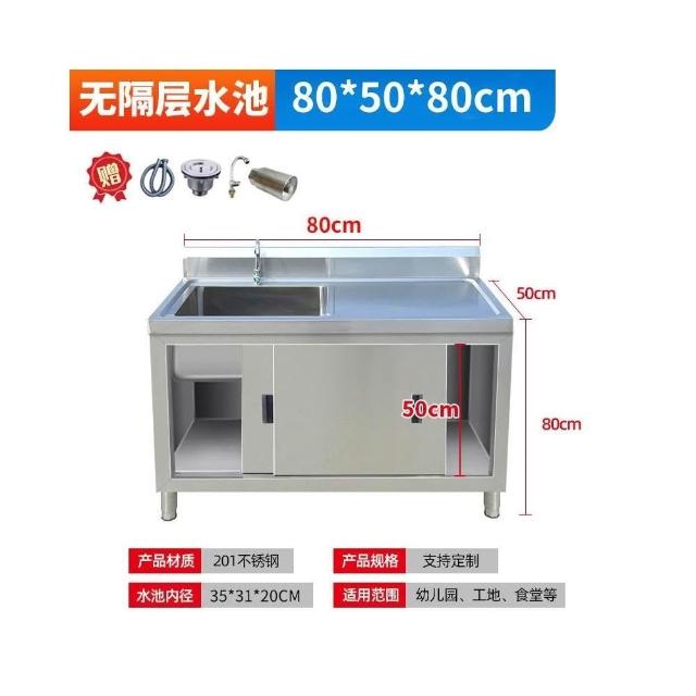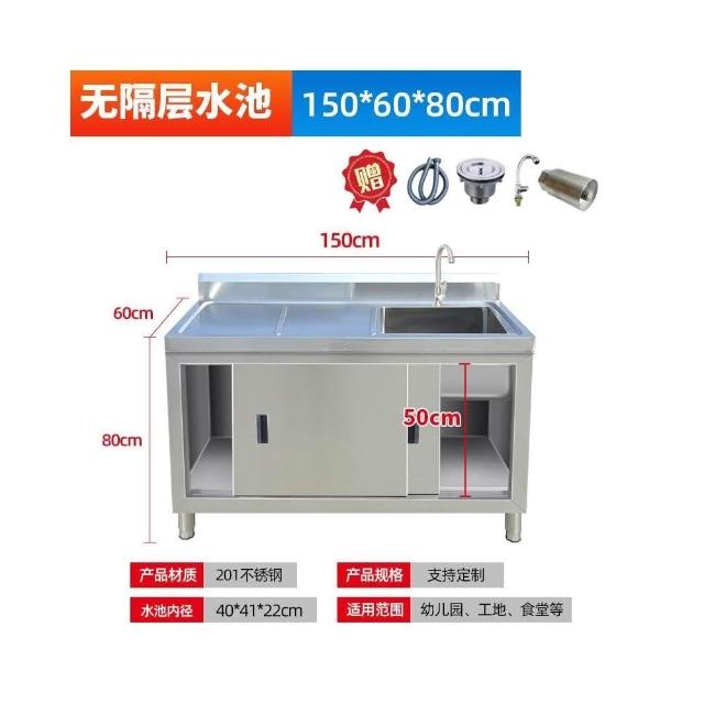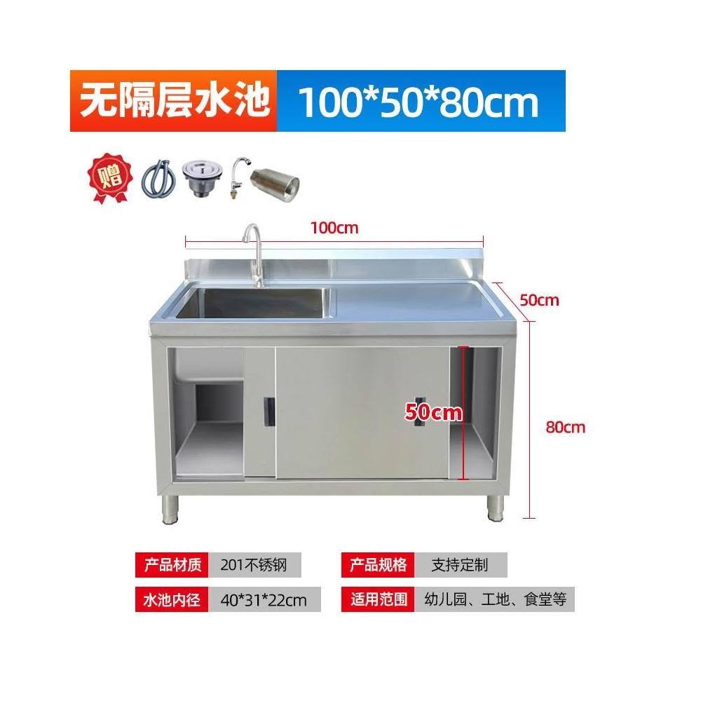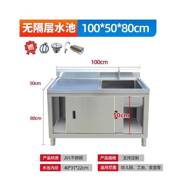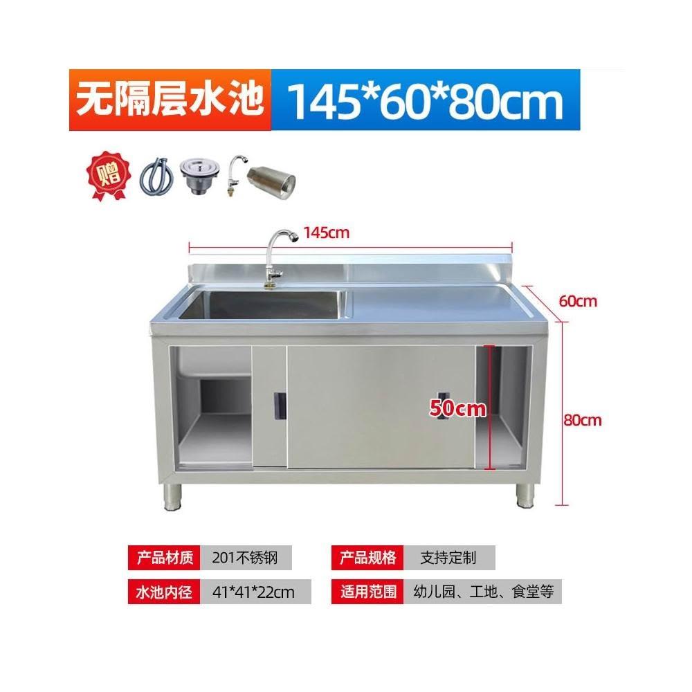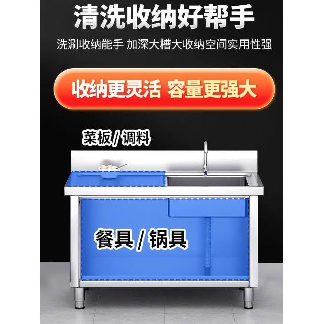 不銹鋼拉門工作臺水槽一體灶台櫃帶水池平臺洗菜商用家用廚房櫥櫃