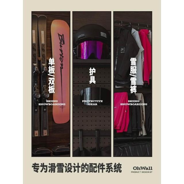 ohwall滑雪洞洞板裝備牆單板雙板胡桃木色牆上雪具收納置物展示架
