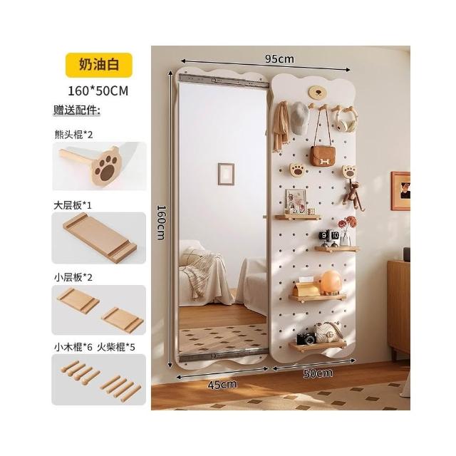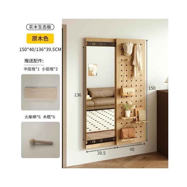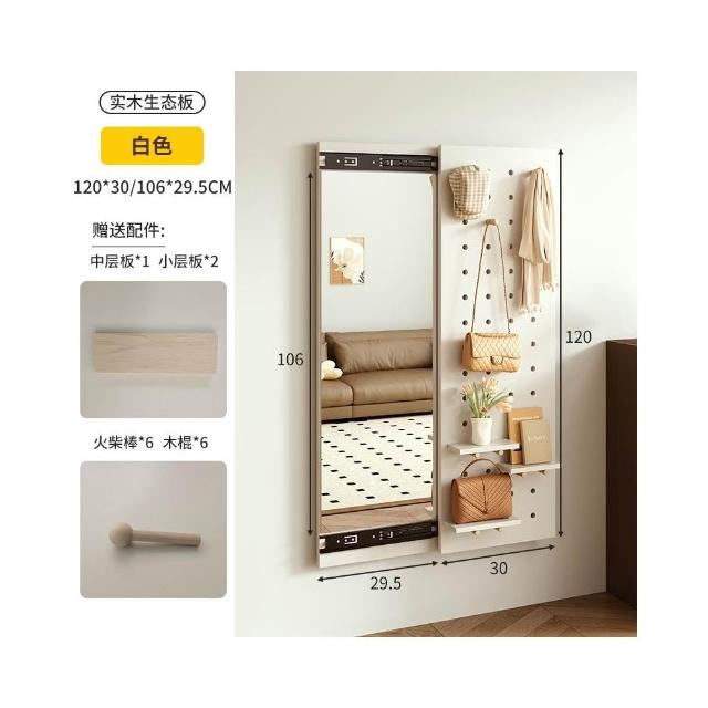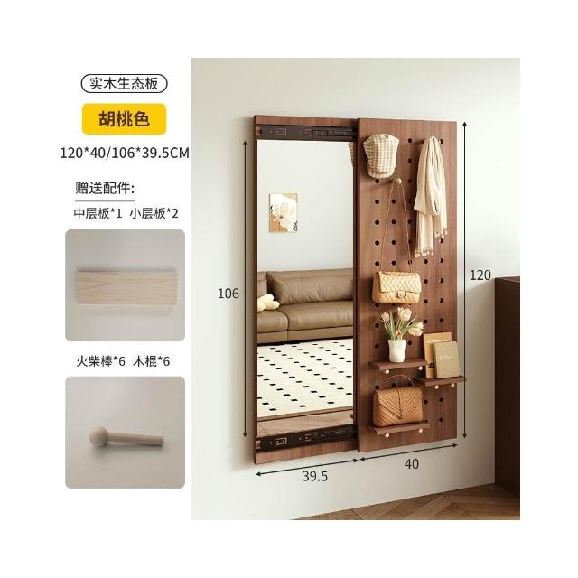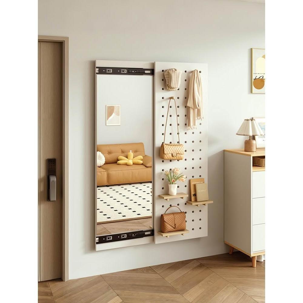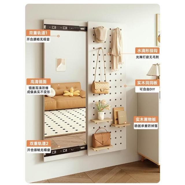 洞洞板穿衣鏡一體家用掛衣架臥室衣帽架實木置物入戶壁掛牆試衣鏡