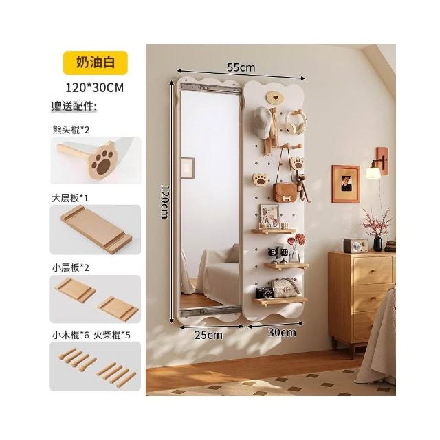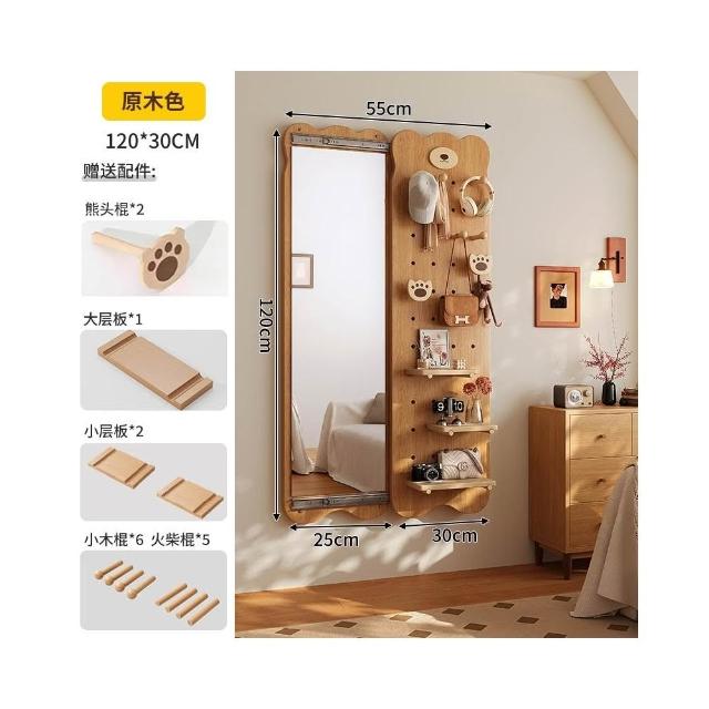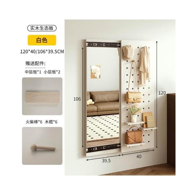 洞洞板穿衣鏡一體家用掛衣架臥室衣帽架實木置物入戶壁掛牆試衣鏡