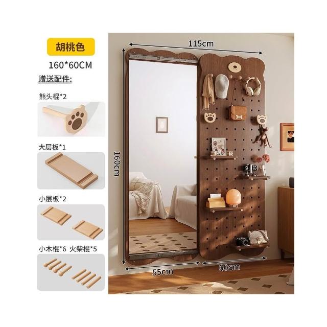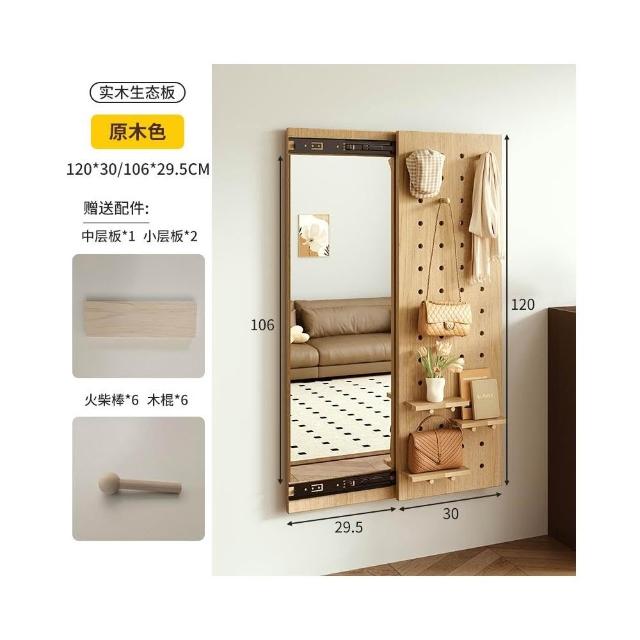 洞洞板穿衣鏡一體家用掛衣架臥室衣帽架實木置物入戶壁掛牆試衣鏡