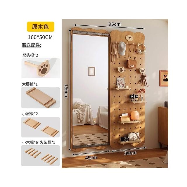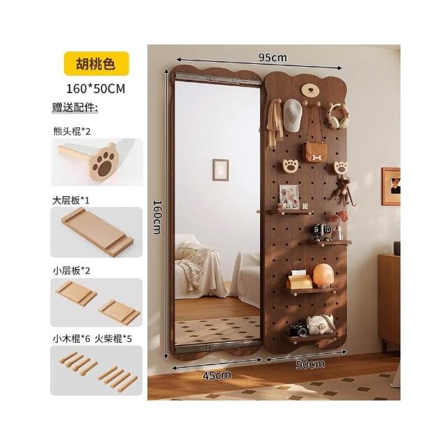 洞洞板穿衣鏡一體家用掛衣架臥室衣帽架實木置物入戶壁掛牆試衣鏡