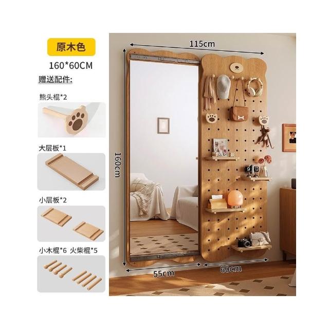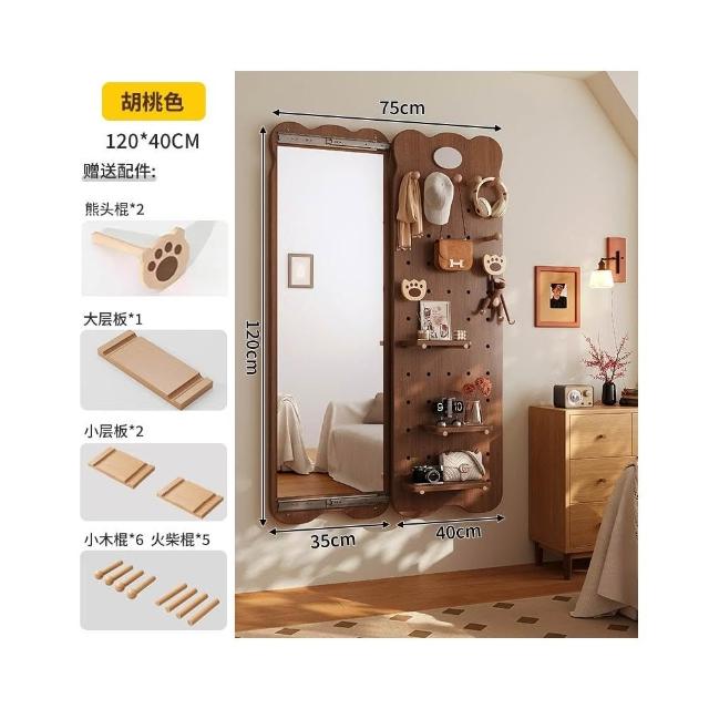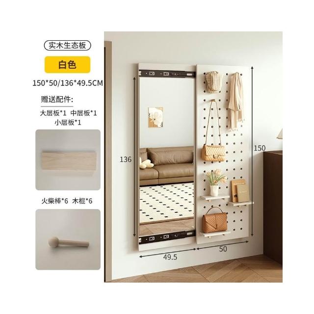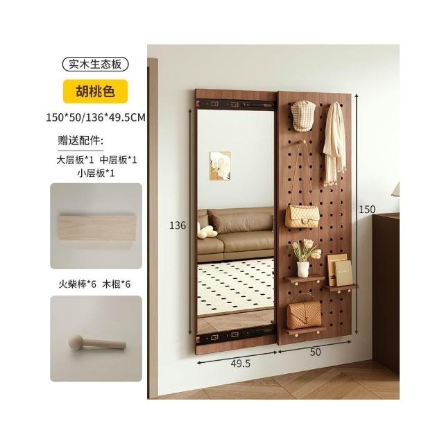 洞洞板穿衣鏡一體家用掛衣架臥室衣帽架實木置物入戶壁掛牆試衣鏡