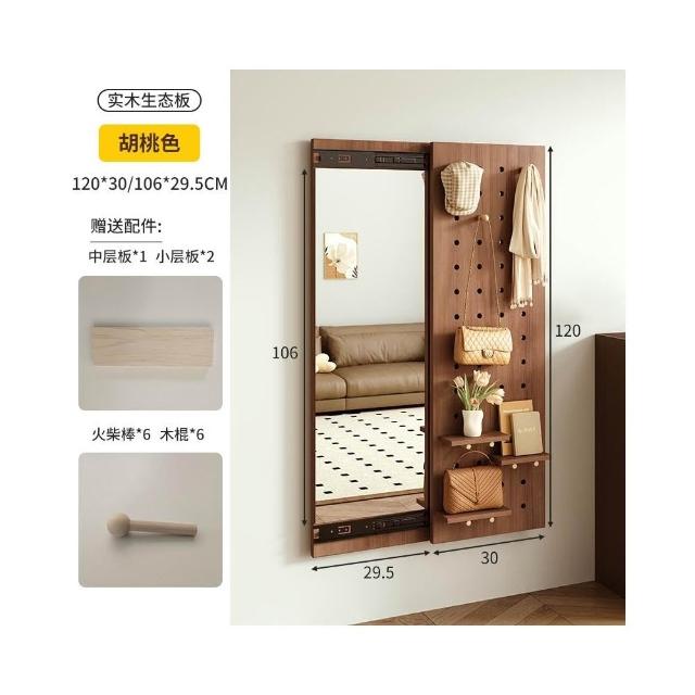 洞洞板穿衣鏡一體家用掛衣架臥室衣帽架實木置物入戶壁掛牆試衣鏡
