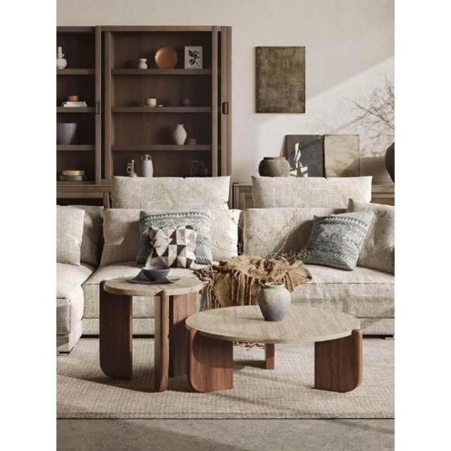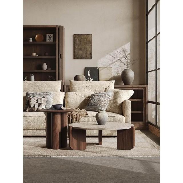 侘寂風極簡實木洞石茶几小茶臺小戶型客廳家用圓形陽臺網紅咖啡桌