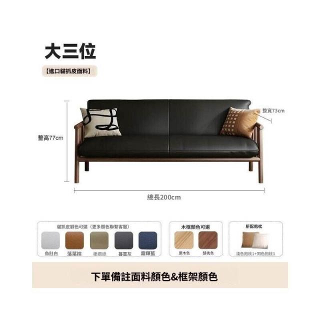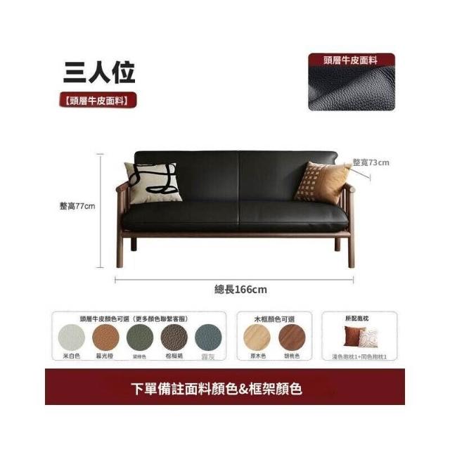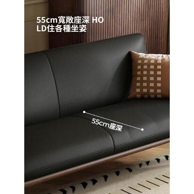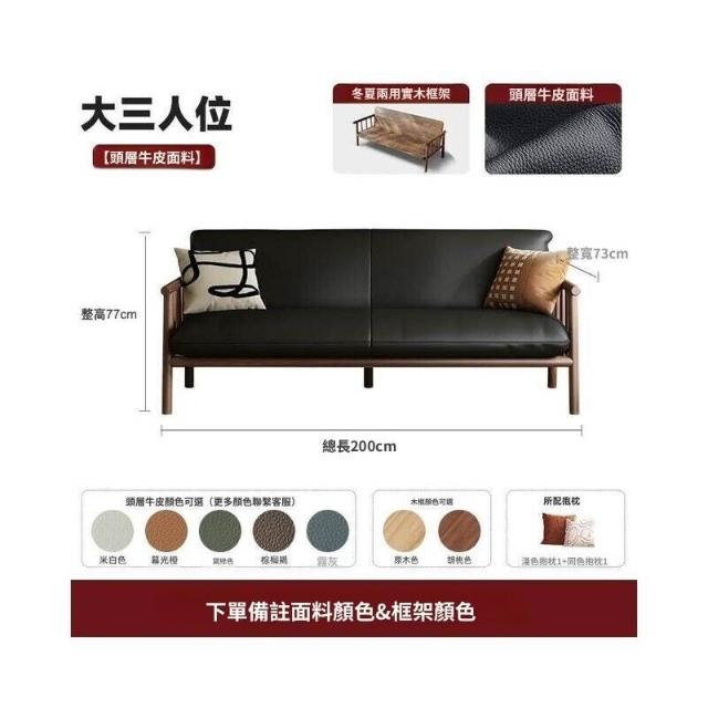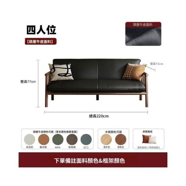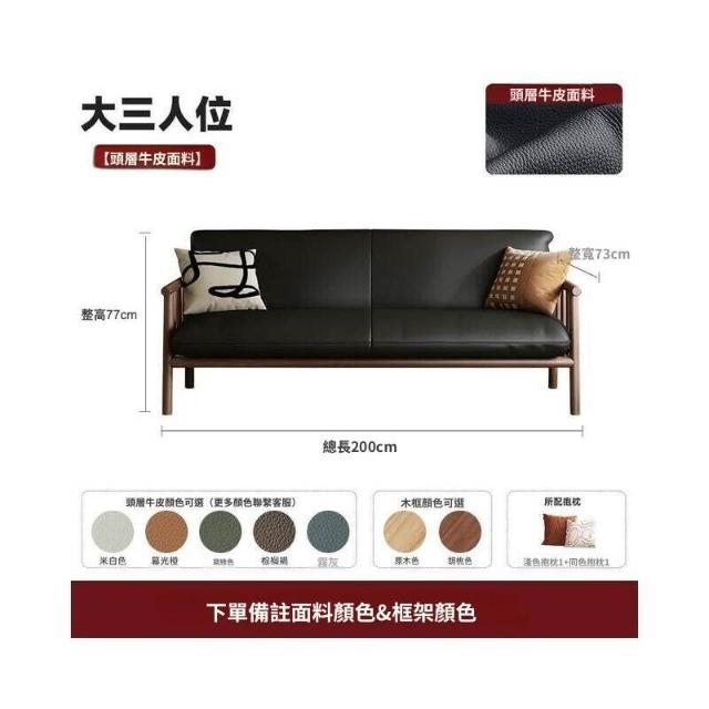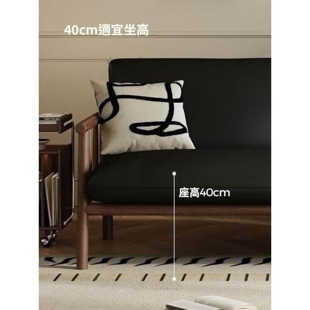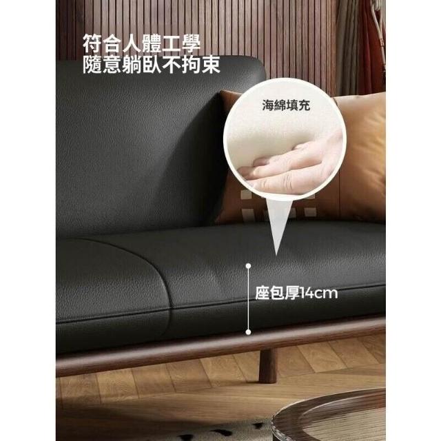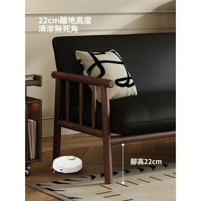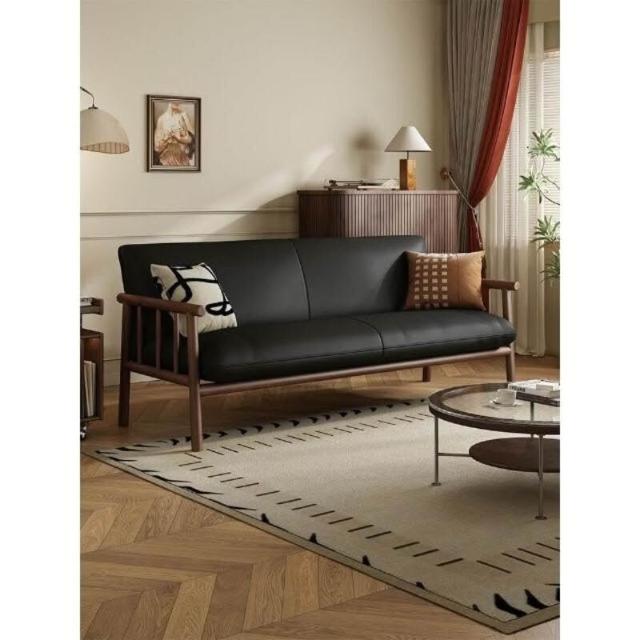 中古風實木沙發小戶型客廳簡約復古黑色皮藝兩三人位直排沙發整裝
