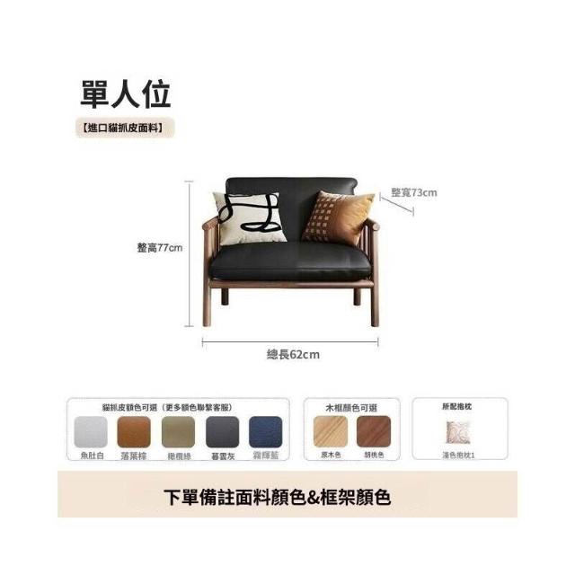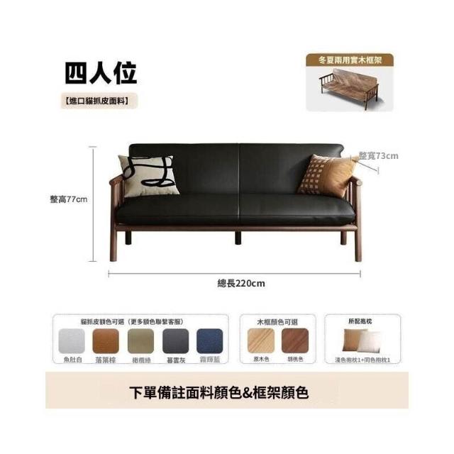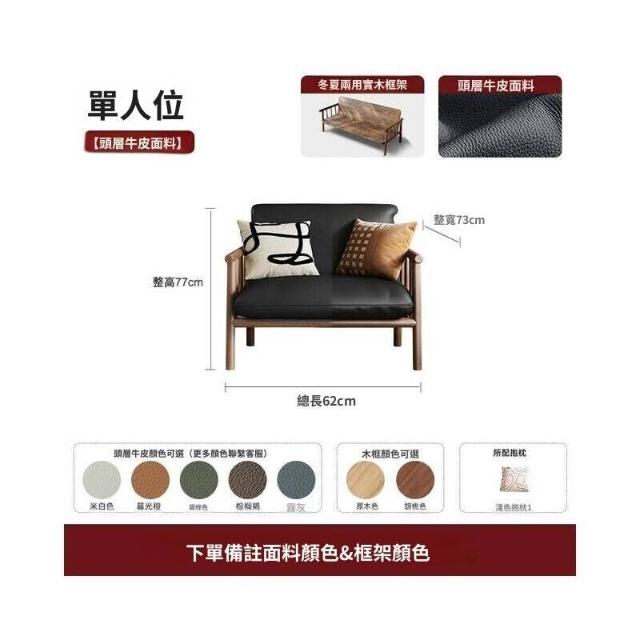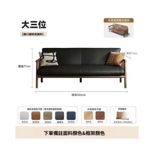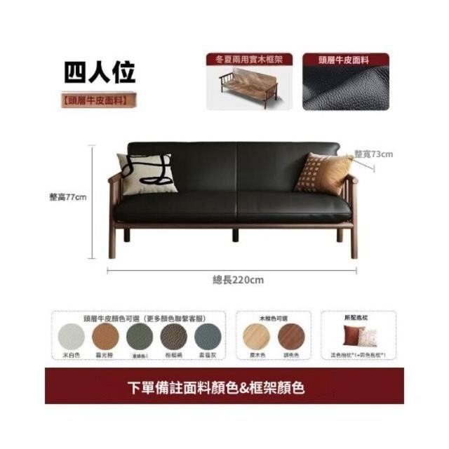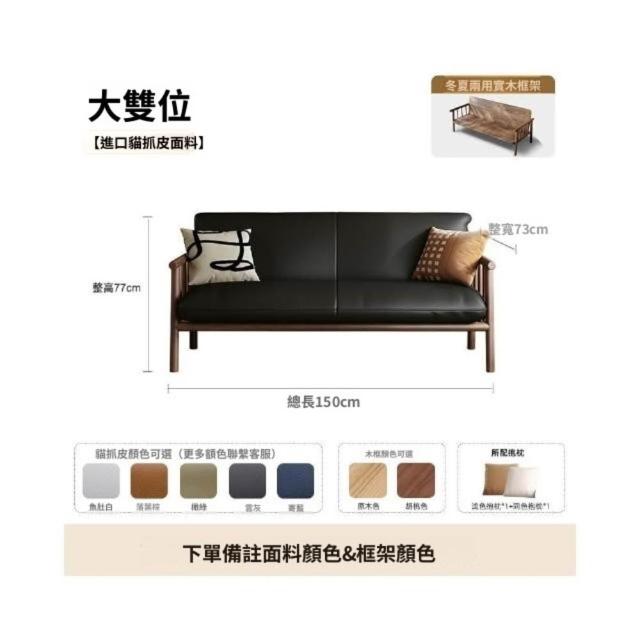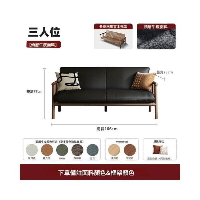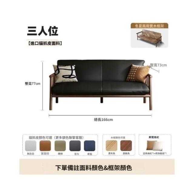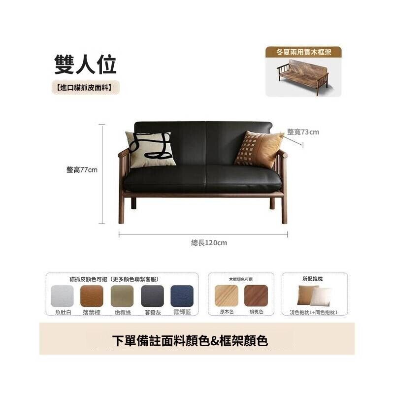 中古風實木沙發小戶型客廳簡約復古黑色皮藝兩三人位直排沙發整裝