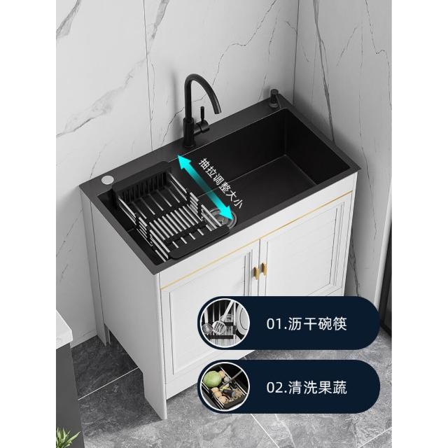 水槽/大單槽水槽廚房洗菜盆一體櫃不銹鋼洗碗池家用落地式櫥櫃水池套餐