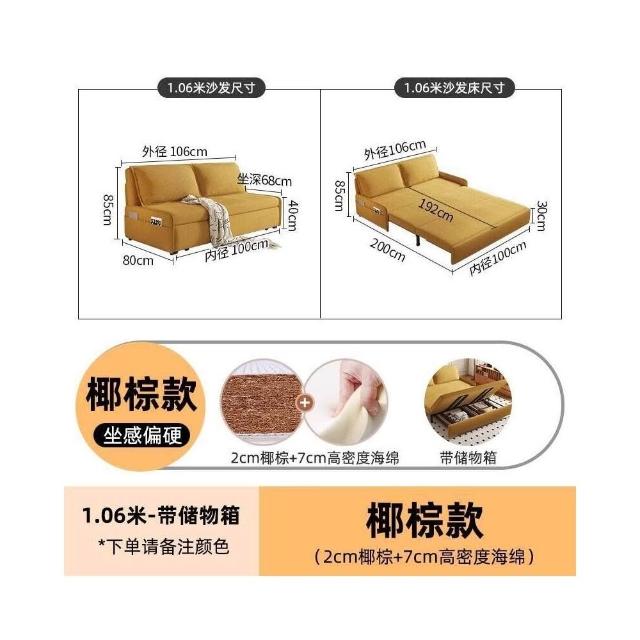 奶油風沙發床可折疊兩用小戶型客廳書房儲物單雙人抽拉床網紅沙發