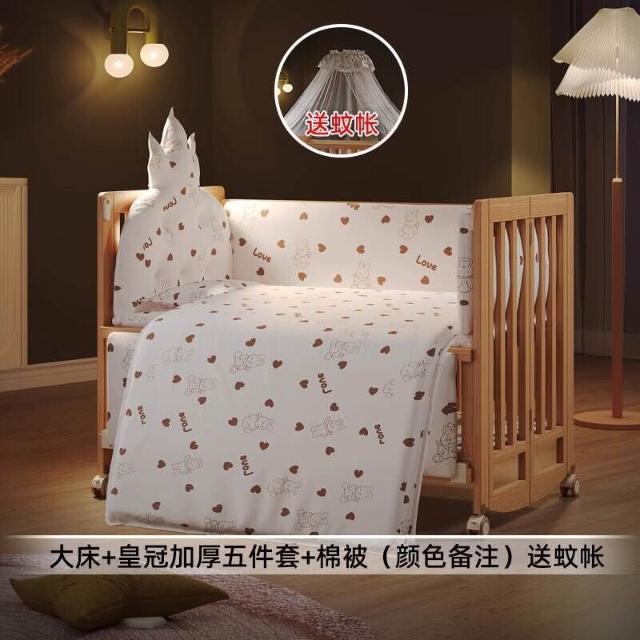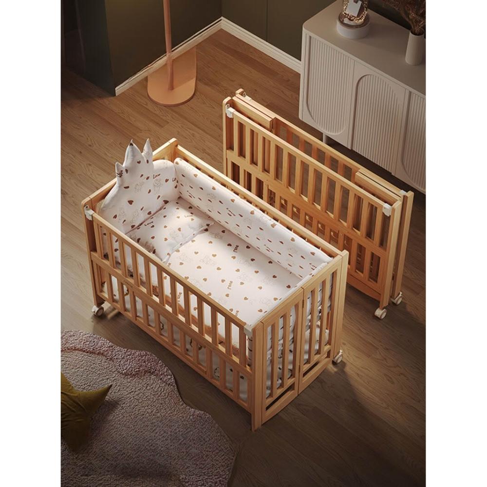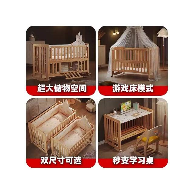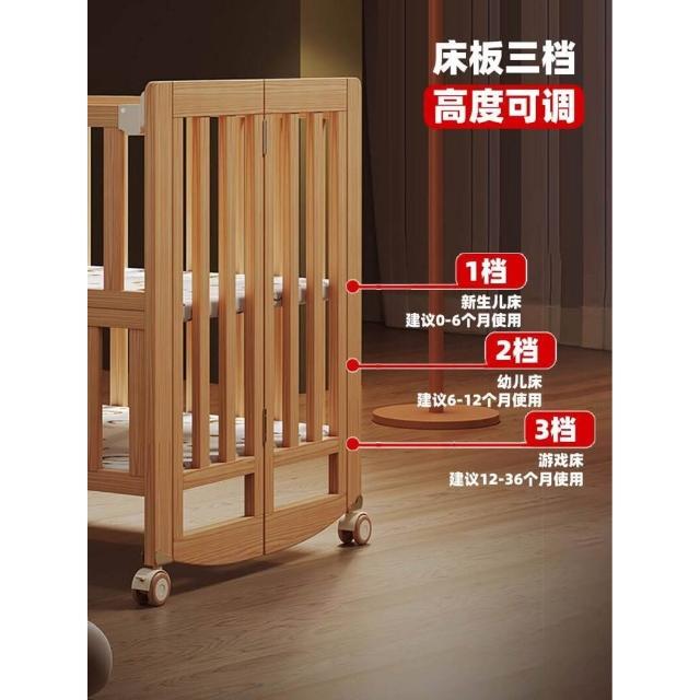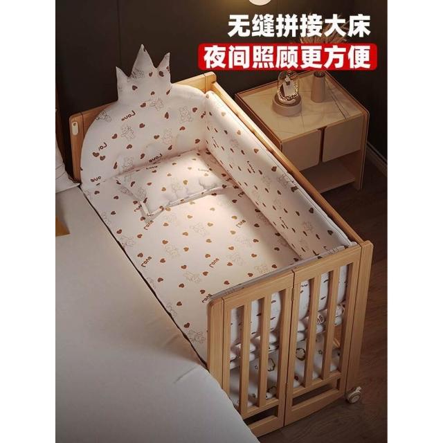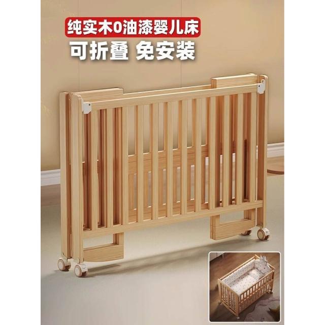 嬰兒床可折疊實木無漆可移動寶寶床多功能新生兒拼接大床