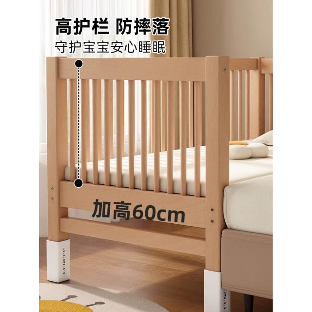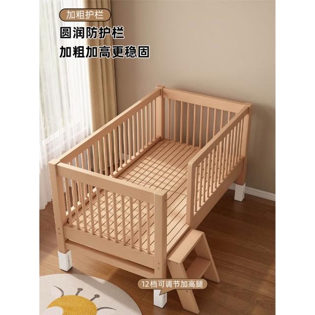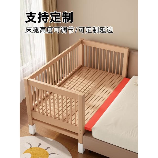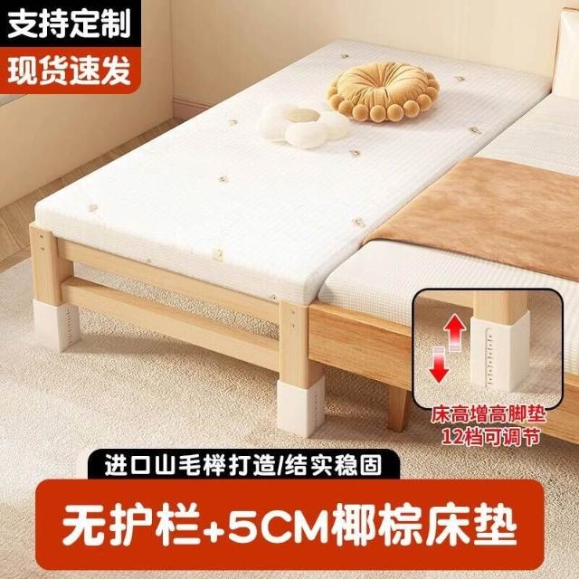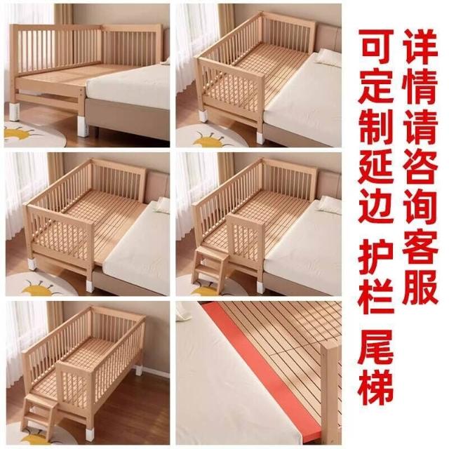 榉木拼接床加寬床兒童床可升降側邊大人單人床實木嬰兒床拼接大床