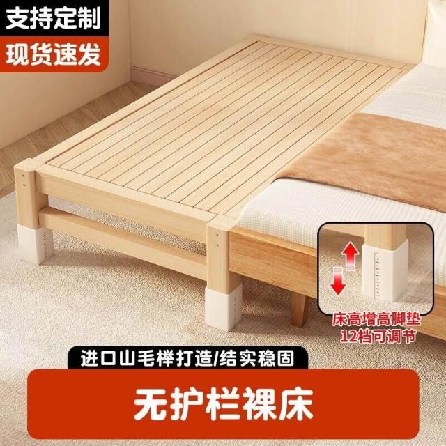 榉木拼接床加寬床兒童床可升降側邊大人單人床實木嬰兒床拼接大床