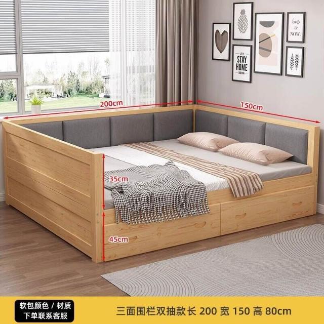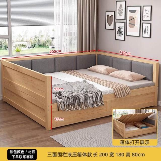實木床/簡約/單人床/榻榻米/床/主臥/小戶型/炕床/拼接床/雙人床/三面圍大床/軟包/軟包床頭床