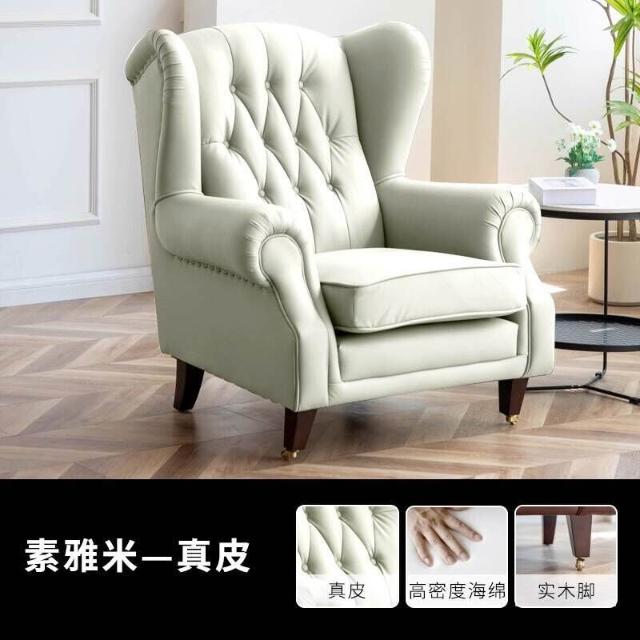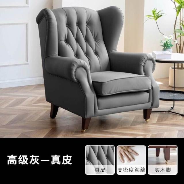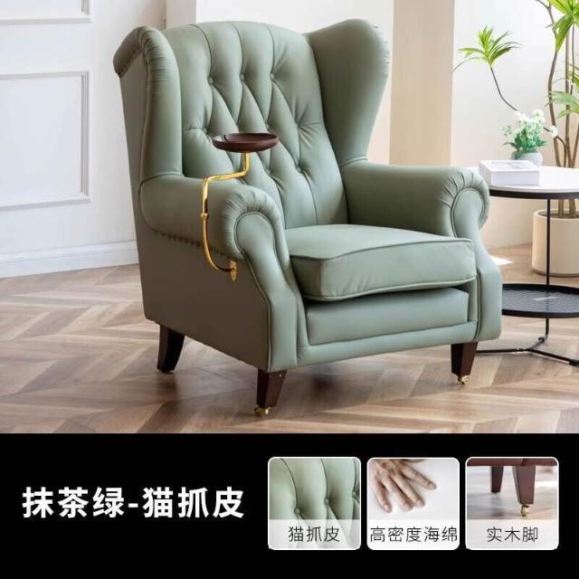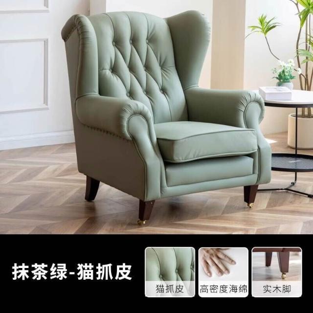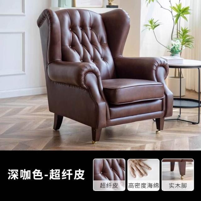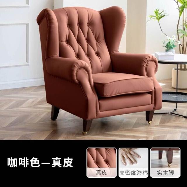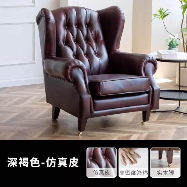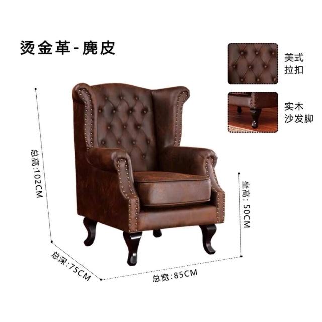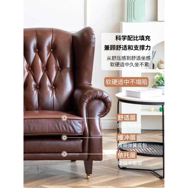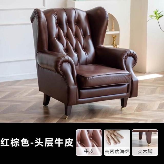 美式單人沙發椅歐式客廳風老虎椅牛皮拉扣酒店真皮教父雪茄椅