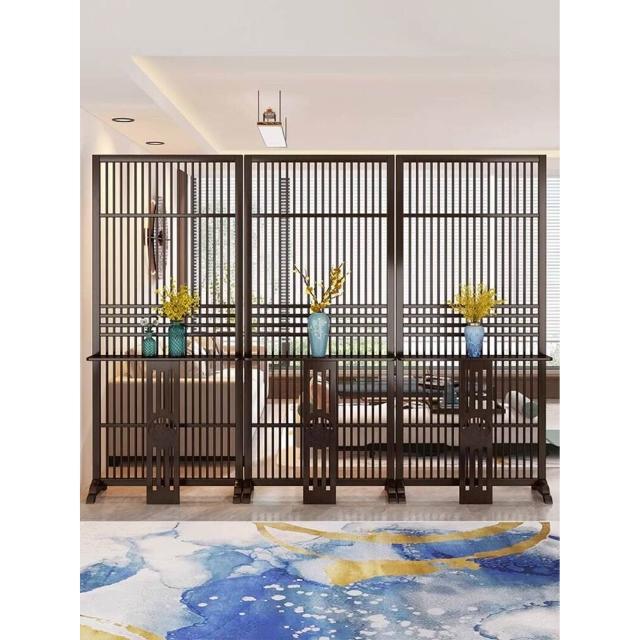 新中式屏風隔斷墻客廳日式可移動入戶玄關座屏家用正對門镂空格柵