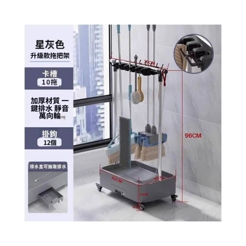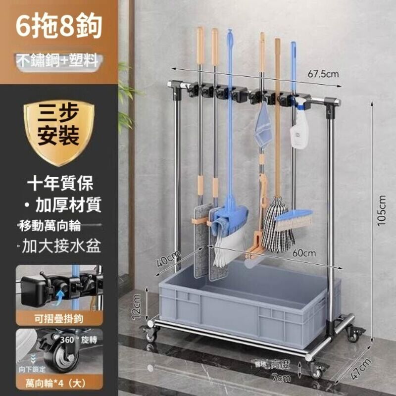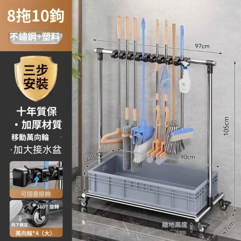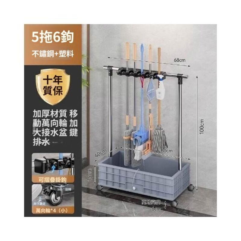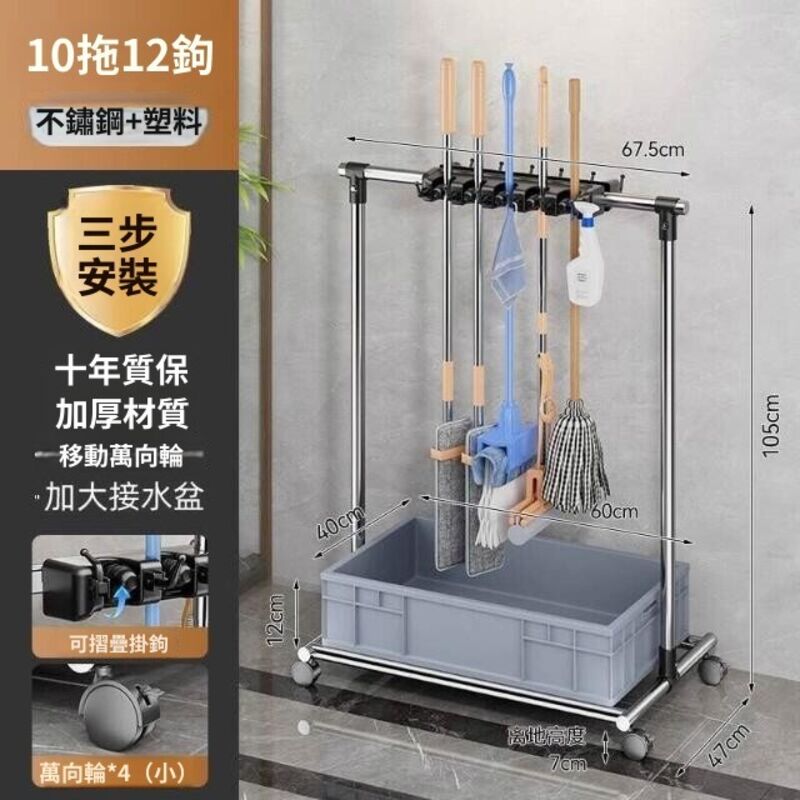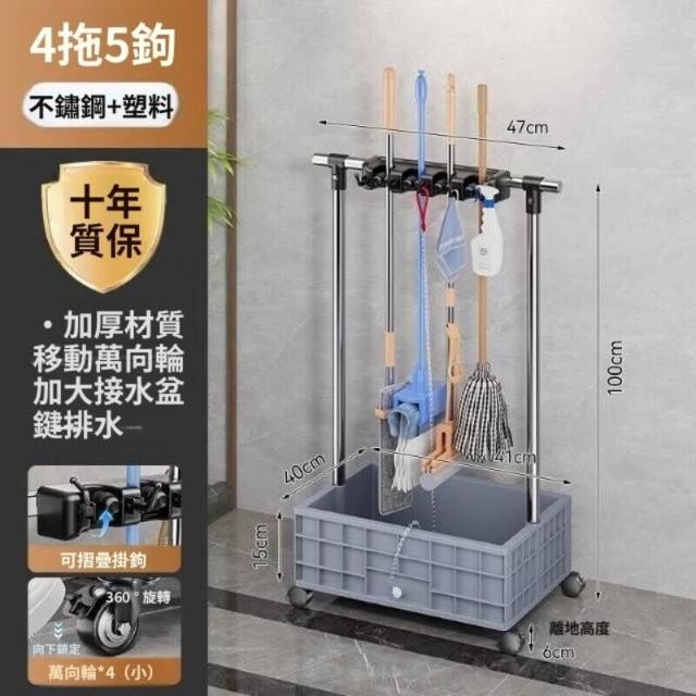 移動落地拖把架商用不銹鋼洗拖布池置物架教室清潔工具收納瀝水架