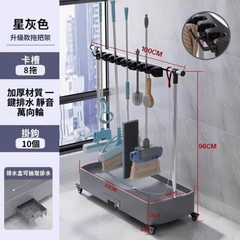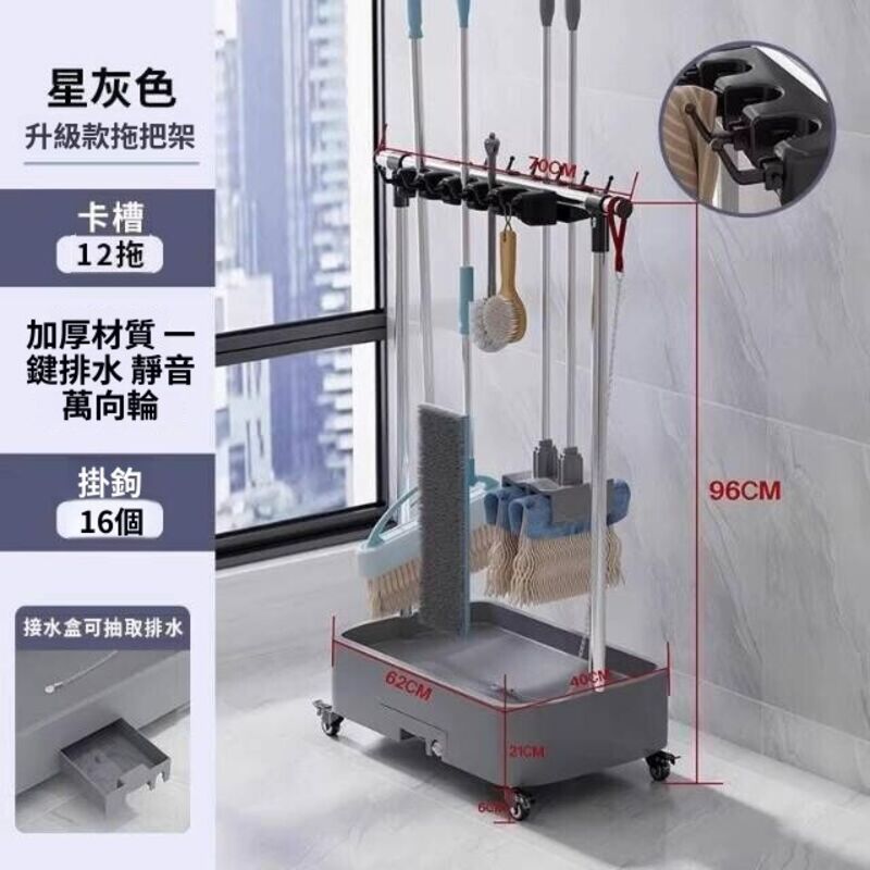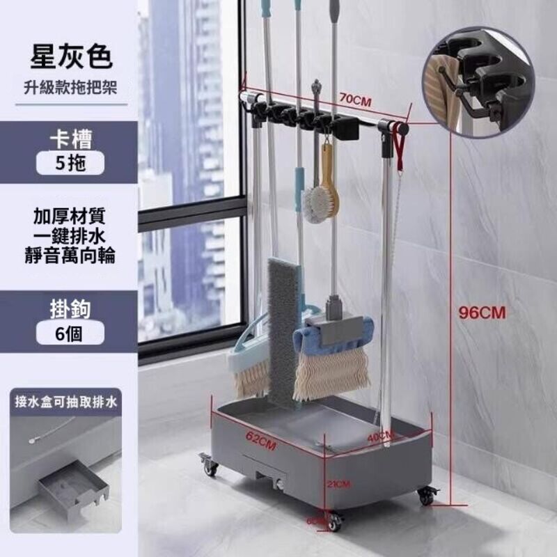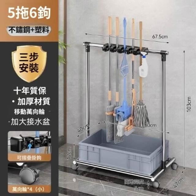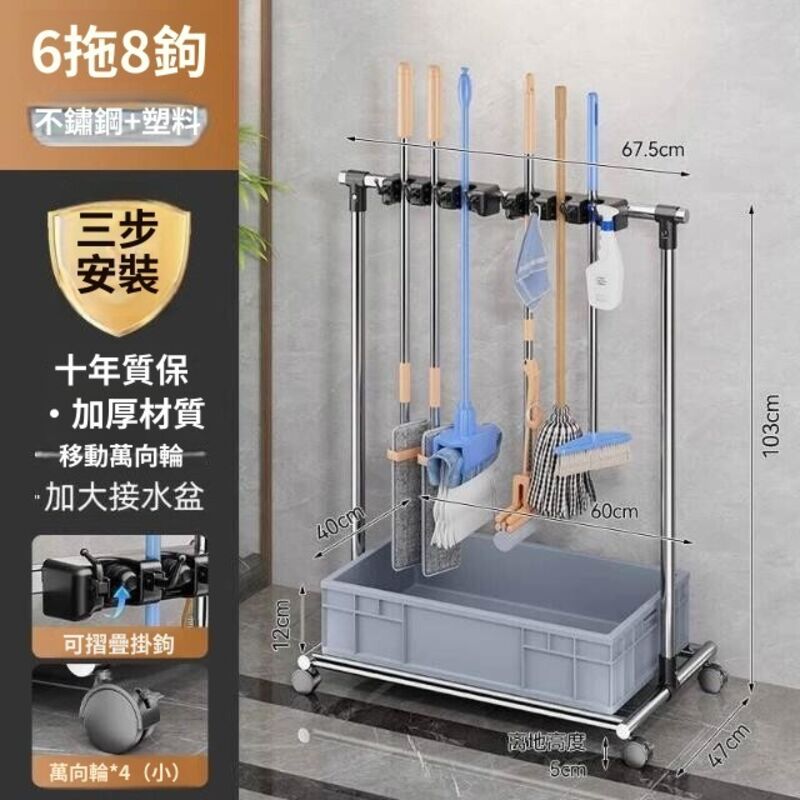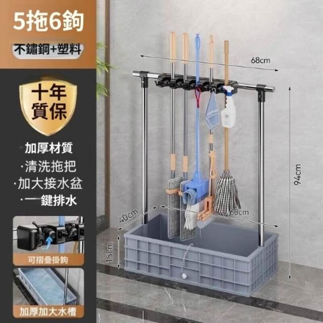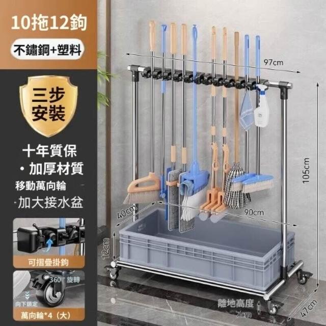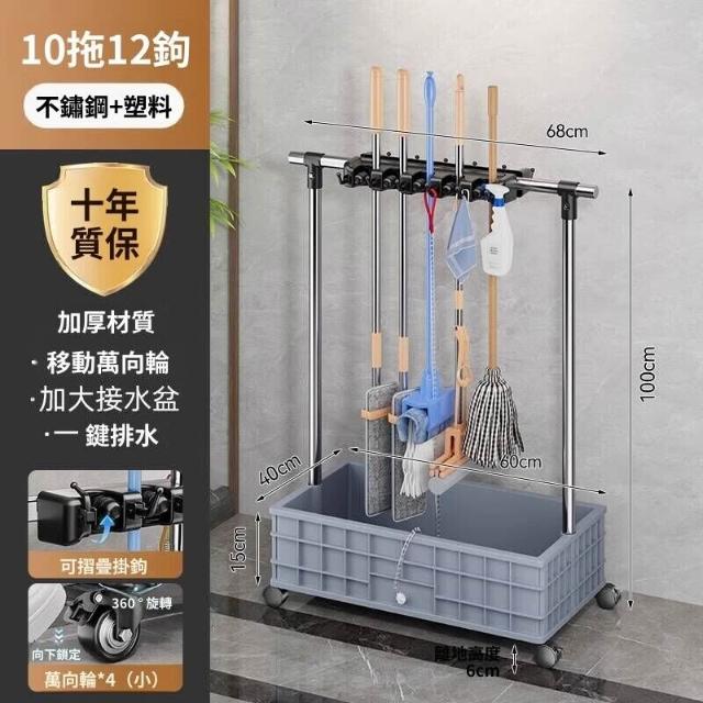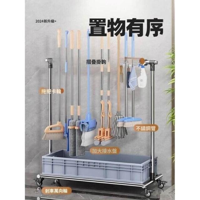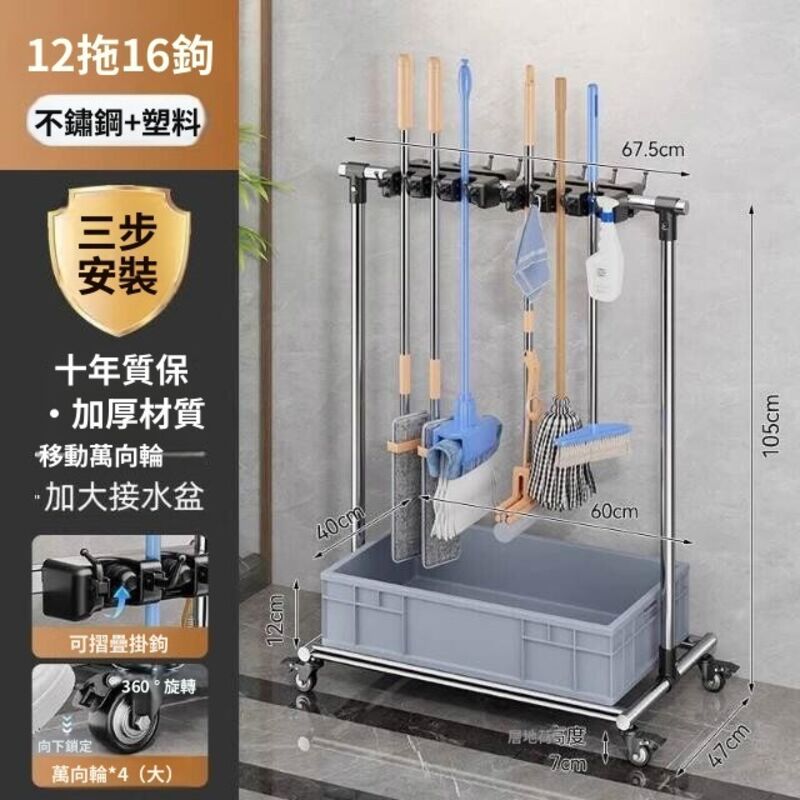 移動落地拖把架商用不銹鋼洗拖布池置物架教室清潔工具收納瀝水架