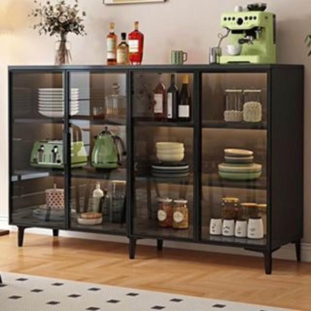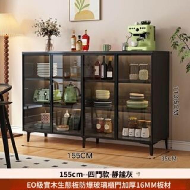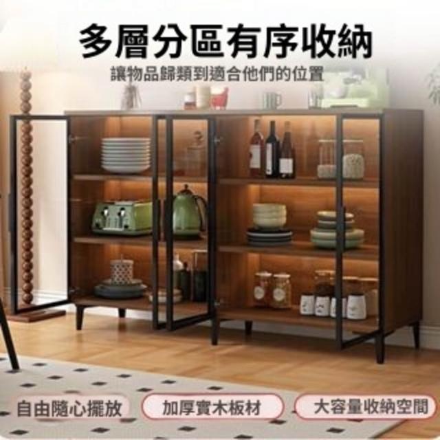 家用餐邊櫃靠牆一體茶水櫃玻璃門現代簡約小戶型儲物櫃酒櫃矮櫃子
