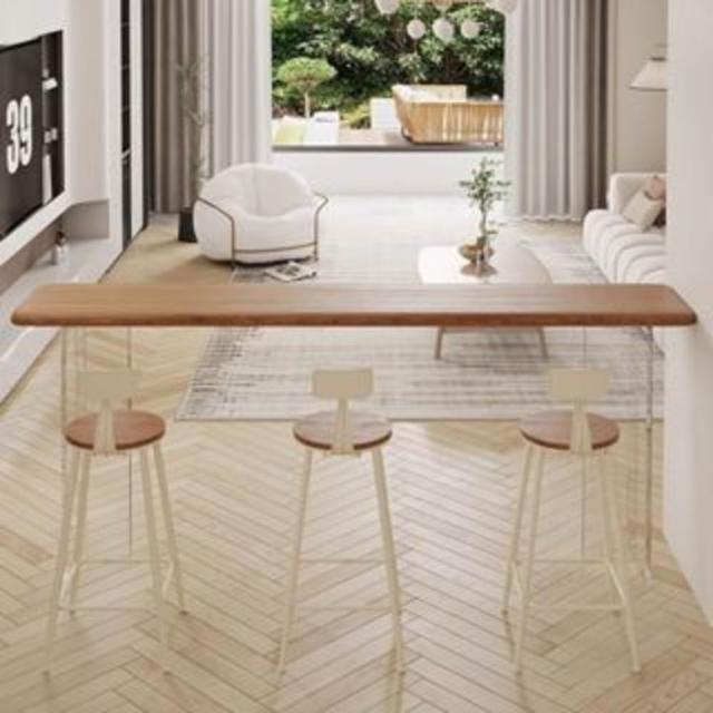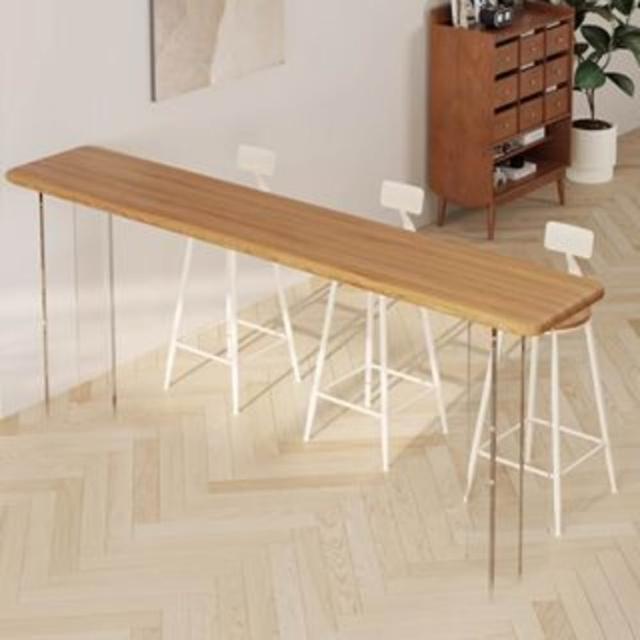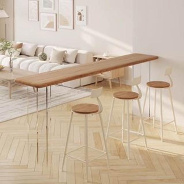 亞克力懸浮實木陽臺吧檯桌簡約現代家用靠牆高腳窄桌酒吧桌椅組合