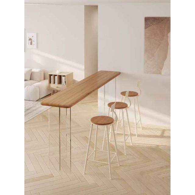 亞克力懸浮實木陽臺吧臺桌簡約現代家用靠墻高腳窄桌酒吧桌椅組合