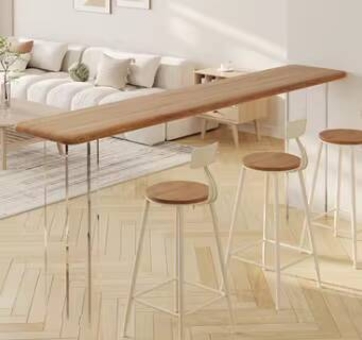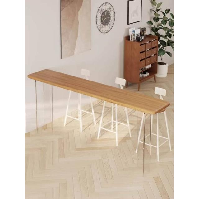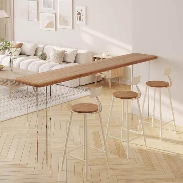 亞克力懸浮實木陽臺吧臺桌簡約現代家用靠墻高腳窄桌酒吧桌椅組合