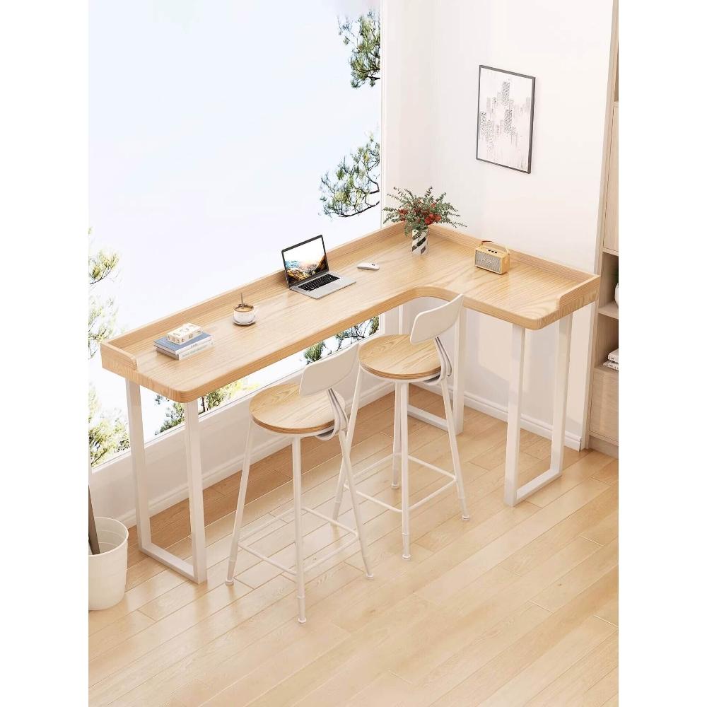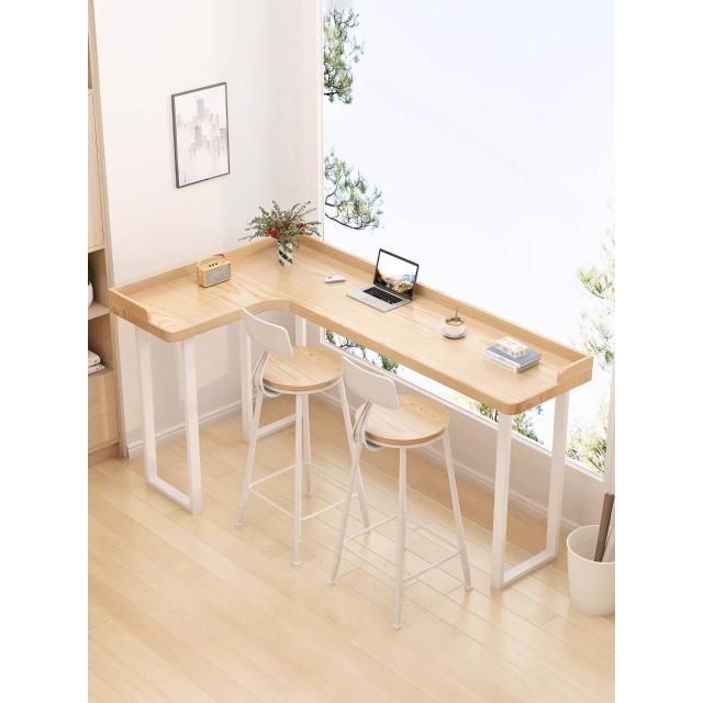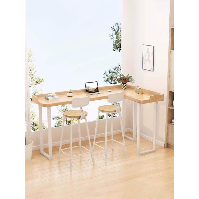 實木轉角吧臺桌帶圍擋 家用左右轉角桌可定製 酒吧奶茶店高腳桌椅