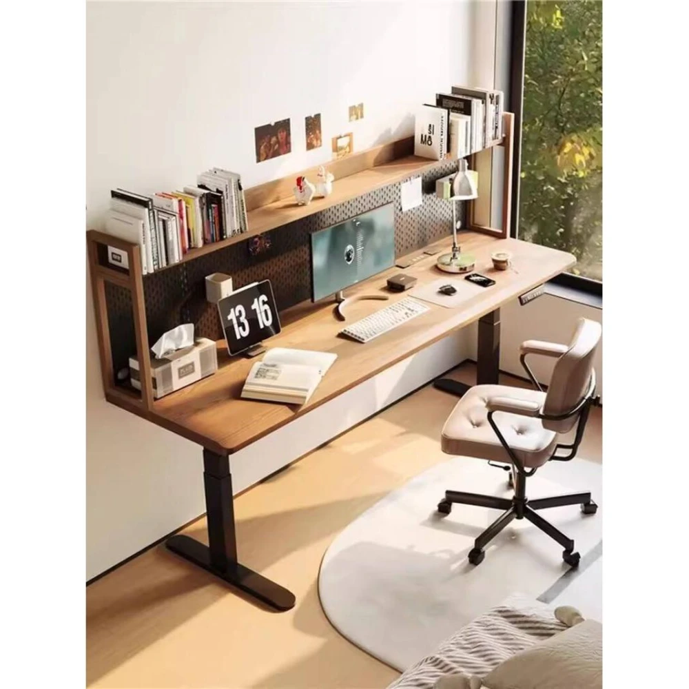 家用實木電動升降桌書桌洞洞板書架一體桌子電腦桌臥室兒童學習桌
