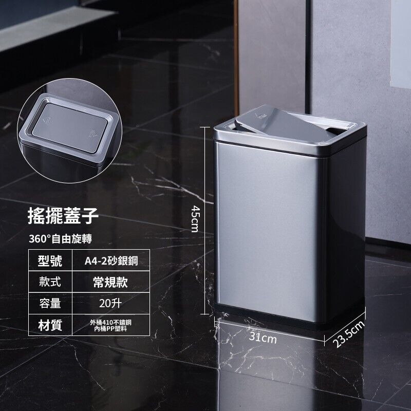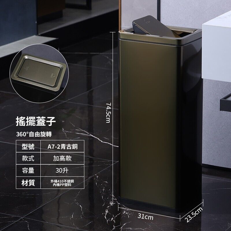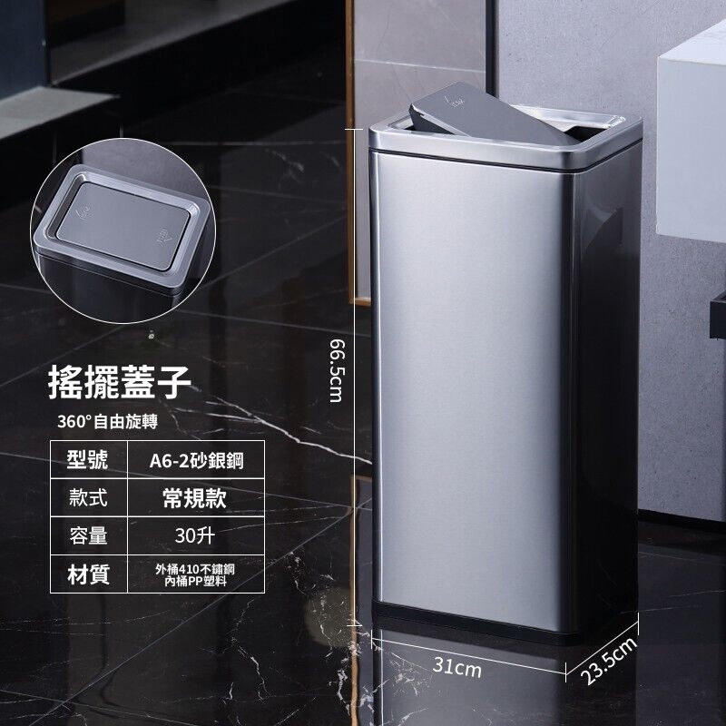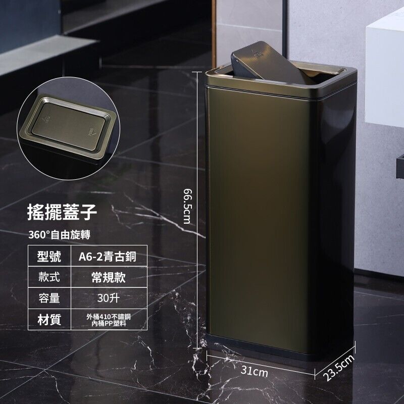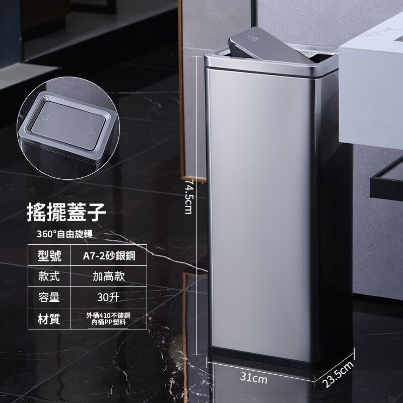 公共衛生洗手間擦手紙搖蓋垃圾桶不銹鋼立式方形翻蓋大號商用廁所