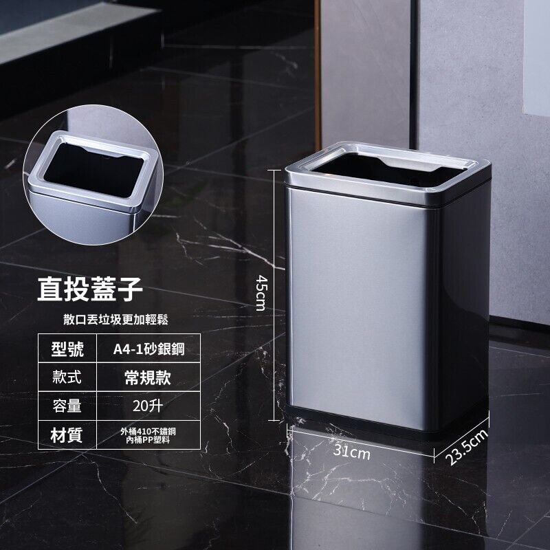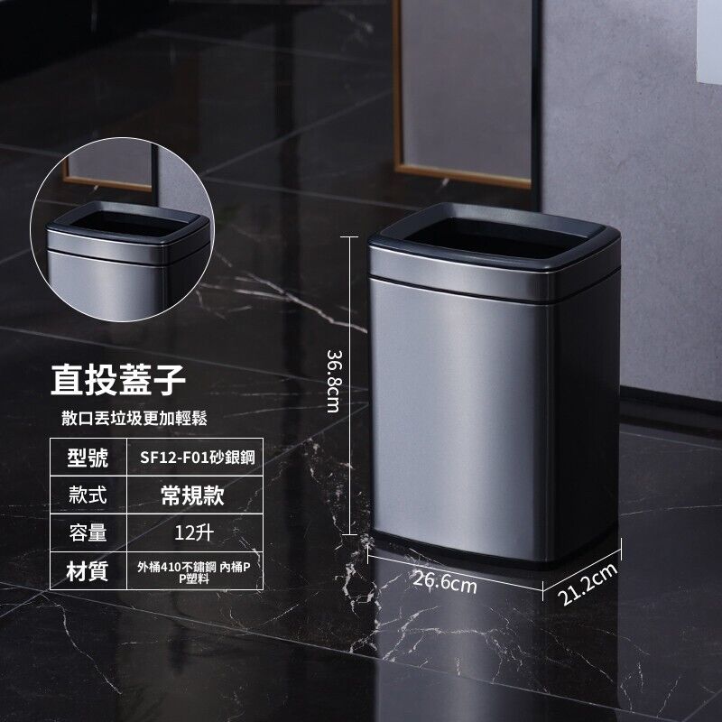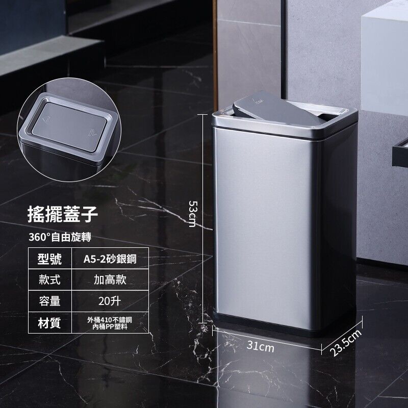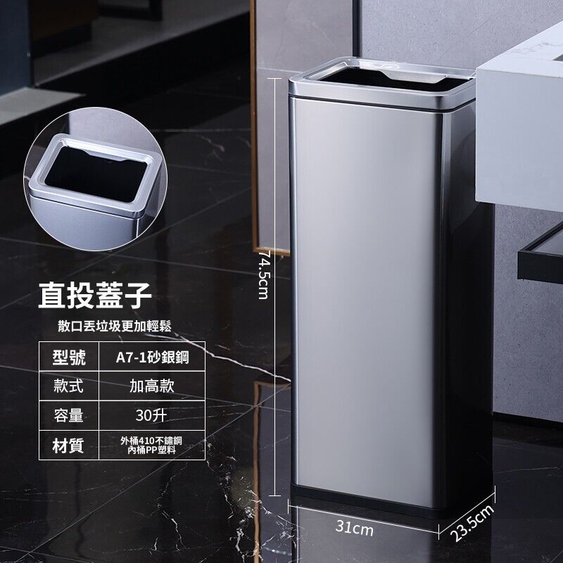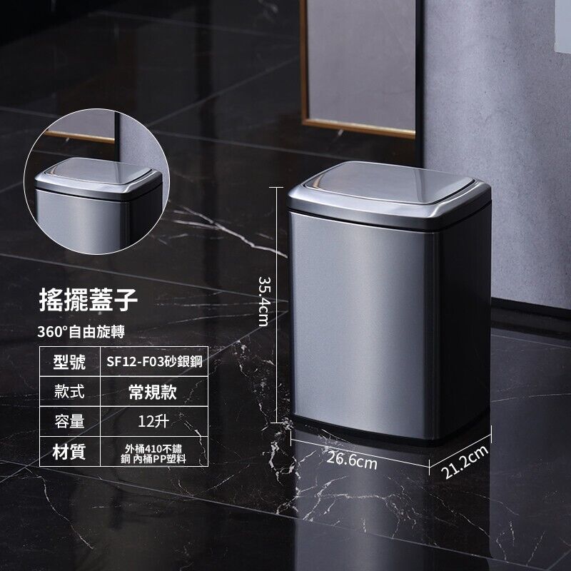 公共衛生洗手間擦手紙搖蓋垃圾桶不銹鋼立式方形翻蓋大號商用廁所