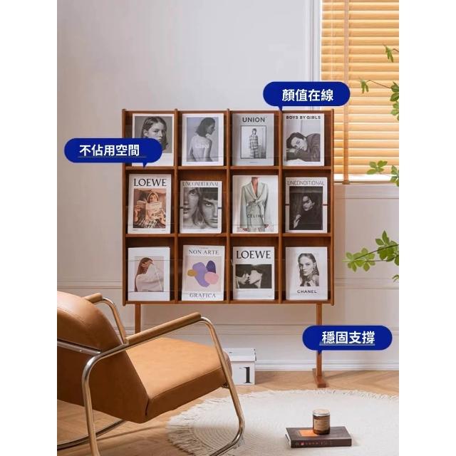 含稅/含運 舒曼雜誌架中古實木閱讀書架日式展示架創意亞克力落地報刊cd架子