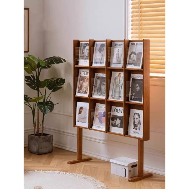 含稅/含運 舒曼雜誌架中古實木閱讀書架日式展示架創意亞克力落地報刊cd架子