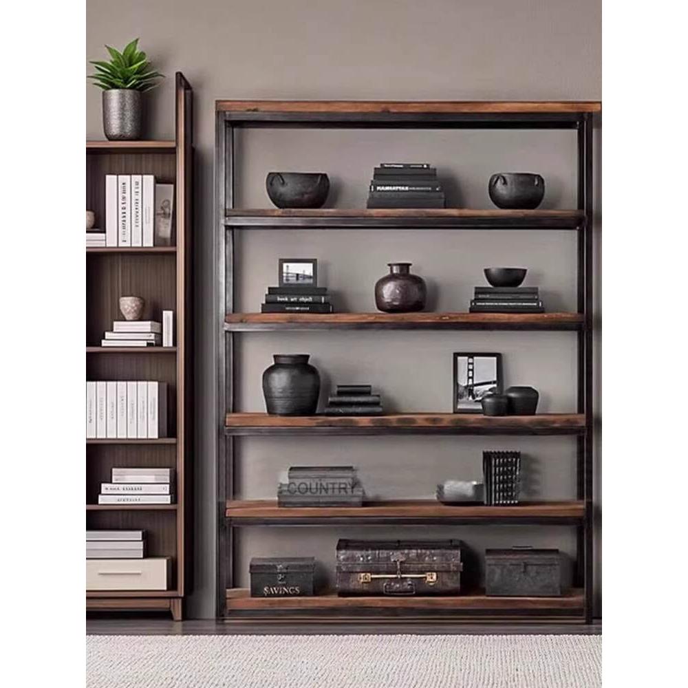 含稅/含運 loft美式實木簡約書櫃陳列架廚房隔板多層置物架復古收納鐵藝書架