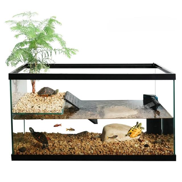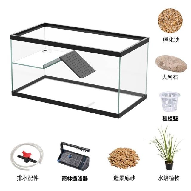 含稅/含運 新型玻璃烏龜缸帶曬臺別墅造景綠植水陸缸家用客廳養龜專用飼養缸