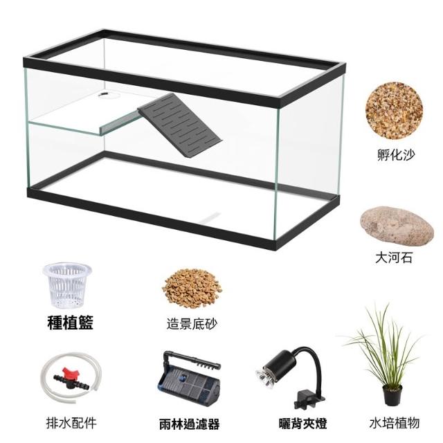 含稅/含運 新型玻璃烏龜缸帶曬臺別墅造景綠植水陸缸家用客廳養龜專用飼養缸