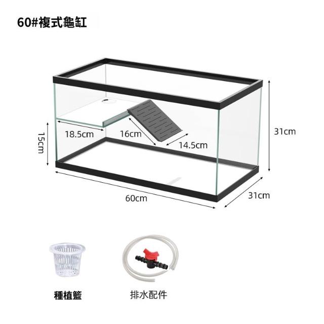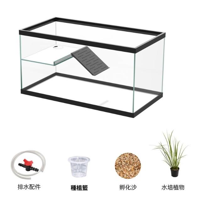 含稅/含運 新型玻璃烏龜缸帶曬臺別墅造景綠植水陸缸家用客廳養龜專用飼養缸