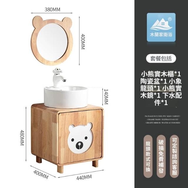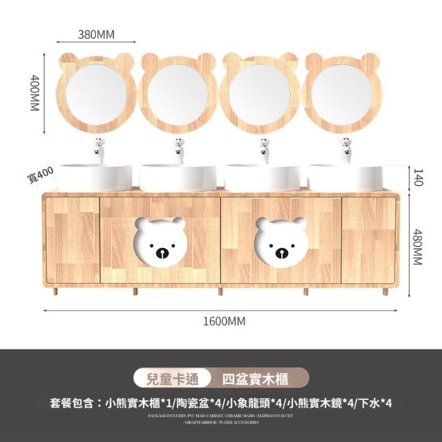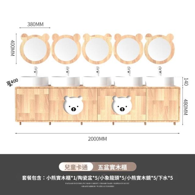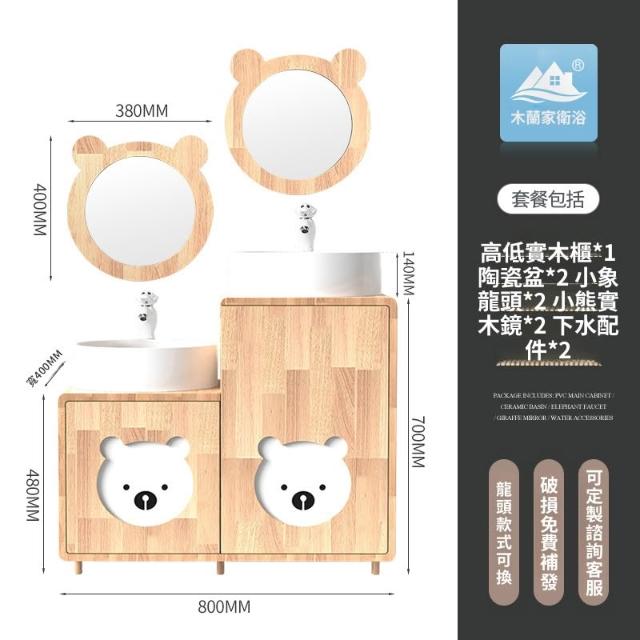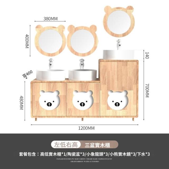 含稅/免運浴室櫃 面盆 浴室鏡 水槽 幼兒園兒童實木浴室櫃橡木卡通親子高低洗手臺洗漱臺洗手盆洗手池