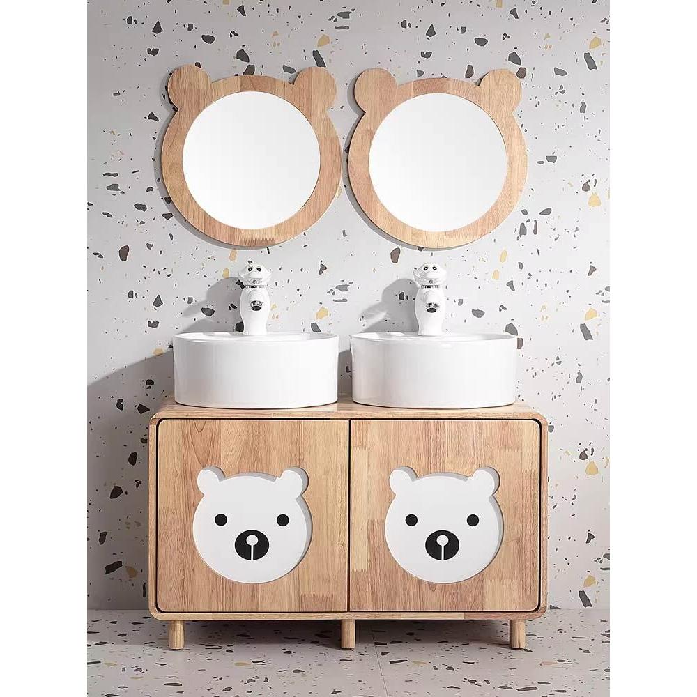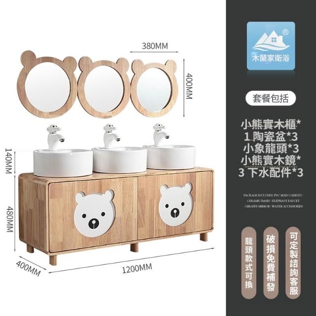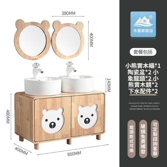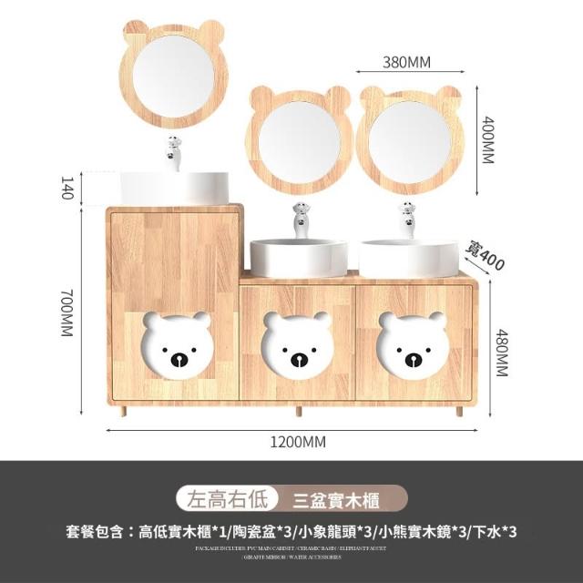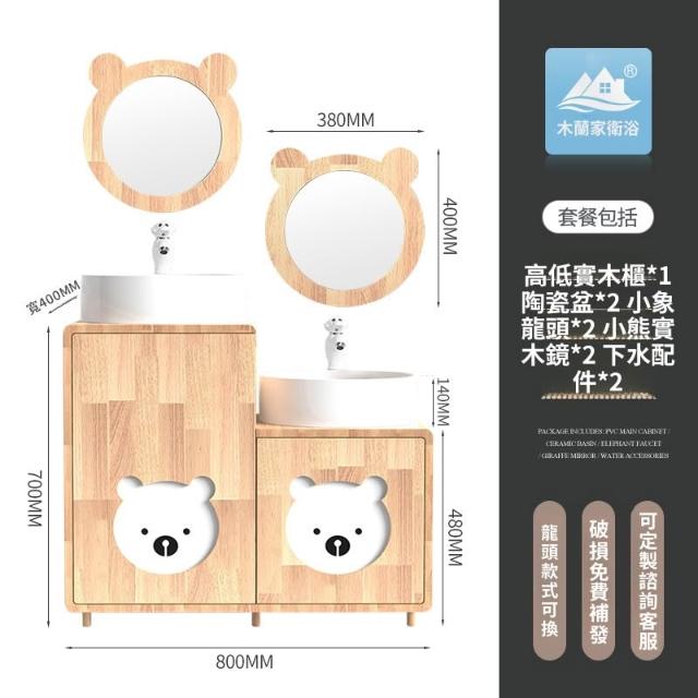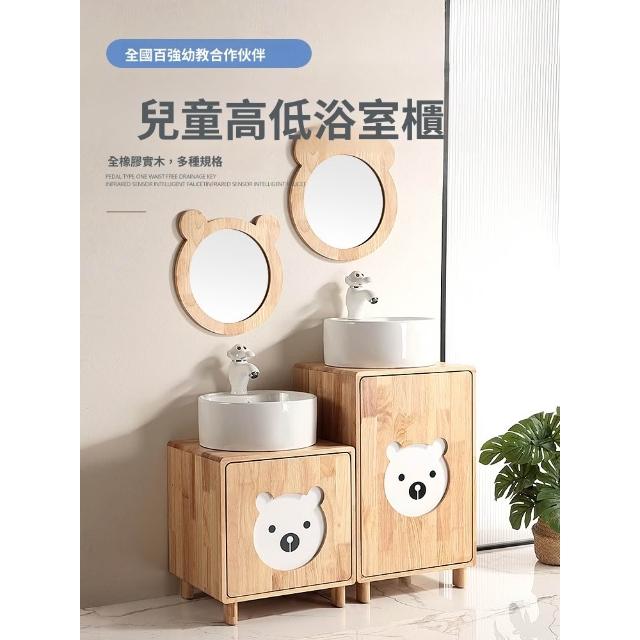 含稅/免運浴室櫃 面盆 浴室鏡 水槽 幼兒園兒童實木浴室櫃橡木卡通親子高低洗手臺洗漱臺洗手盆洗手池