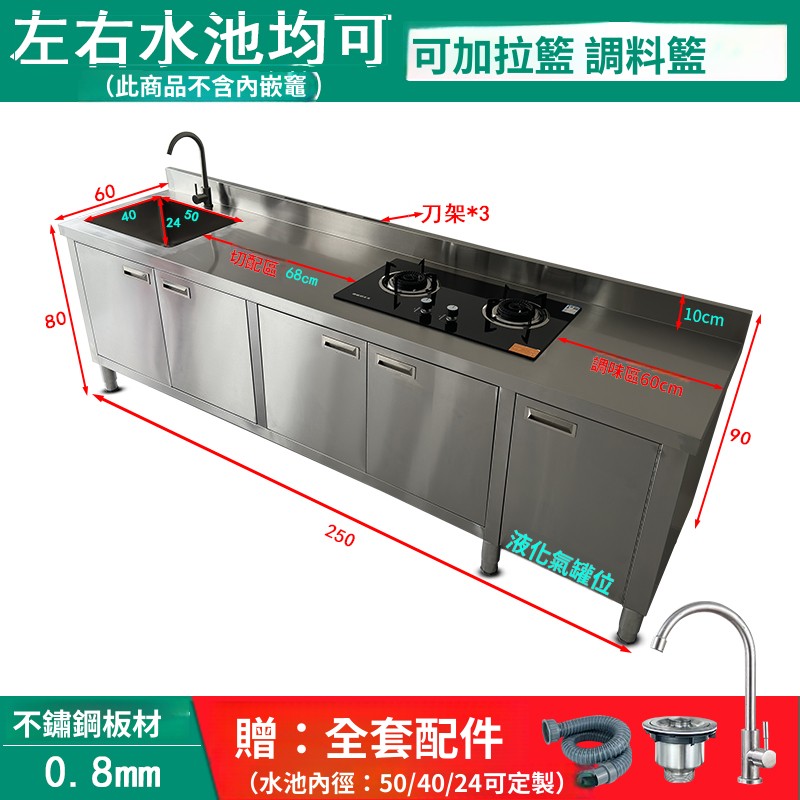 含稅/含運 304不銹鋼工作臺帶水池平臺水槽一體竈臺櫃飯店商用家用廚房櫥櫃A
